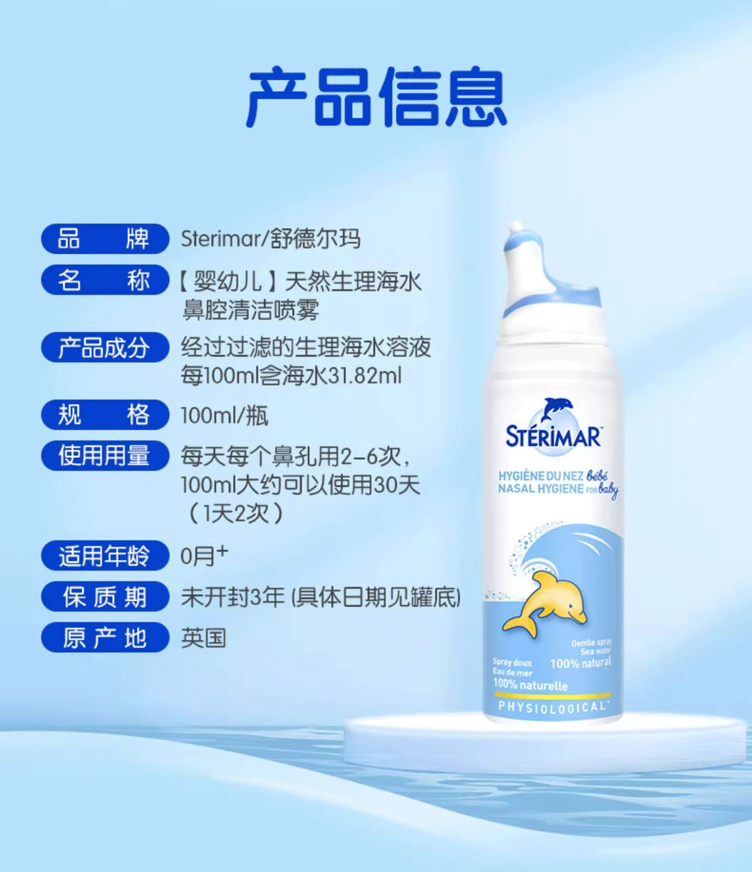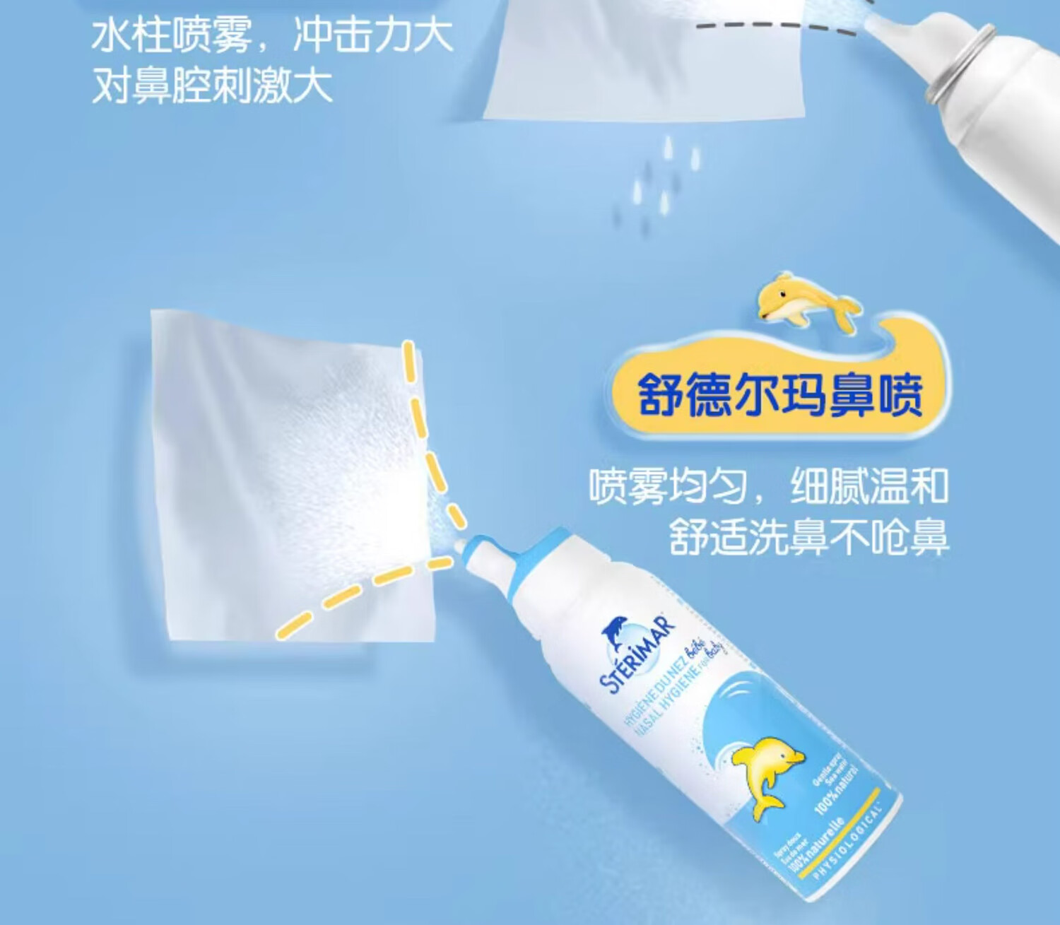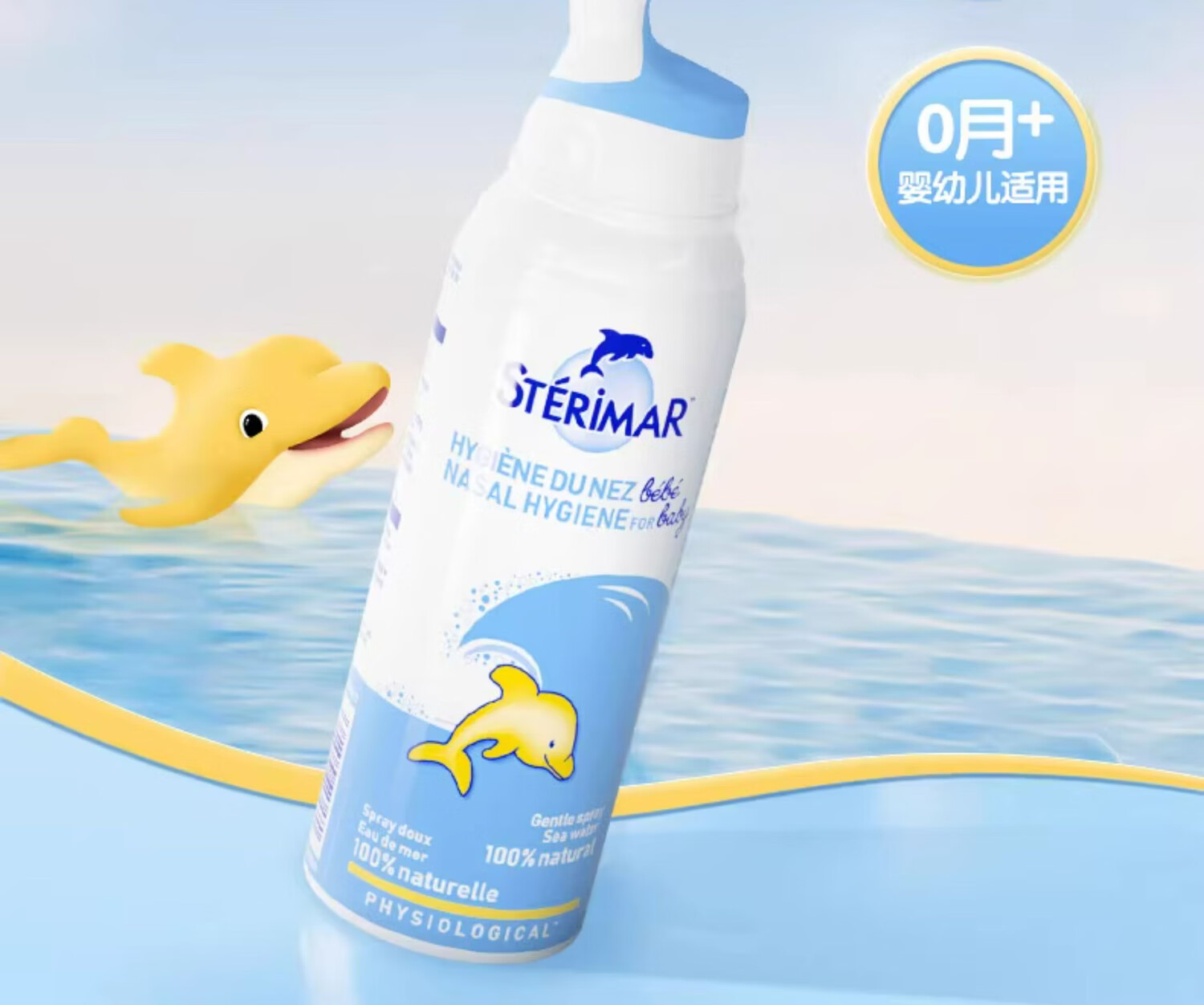 STERIMAR Little Dolphin sea salt water nasal spray physiological sea water spray baby pacifier nozzle 100ml*2 bottles children's nasal wash