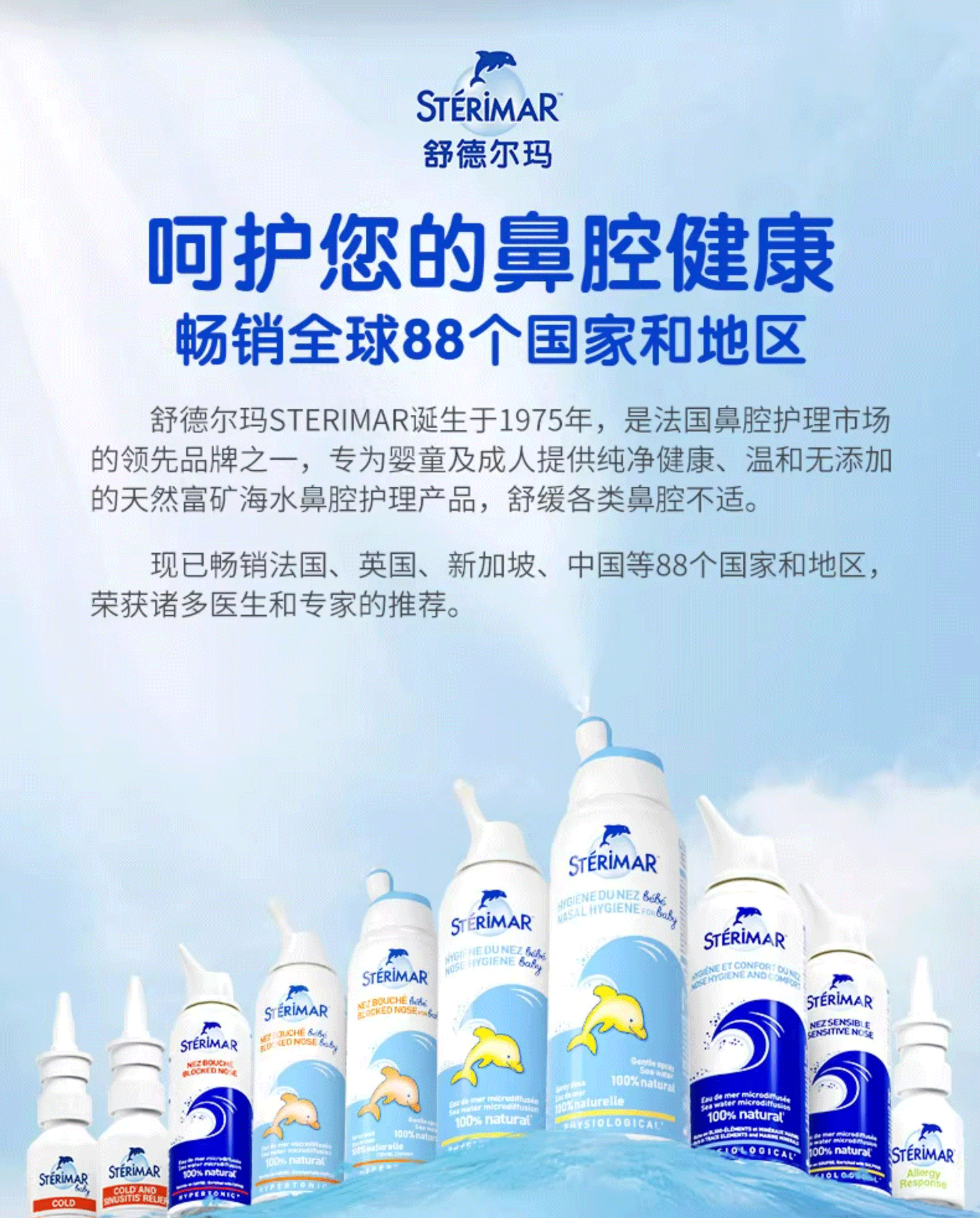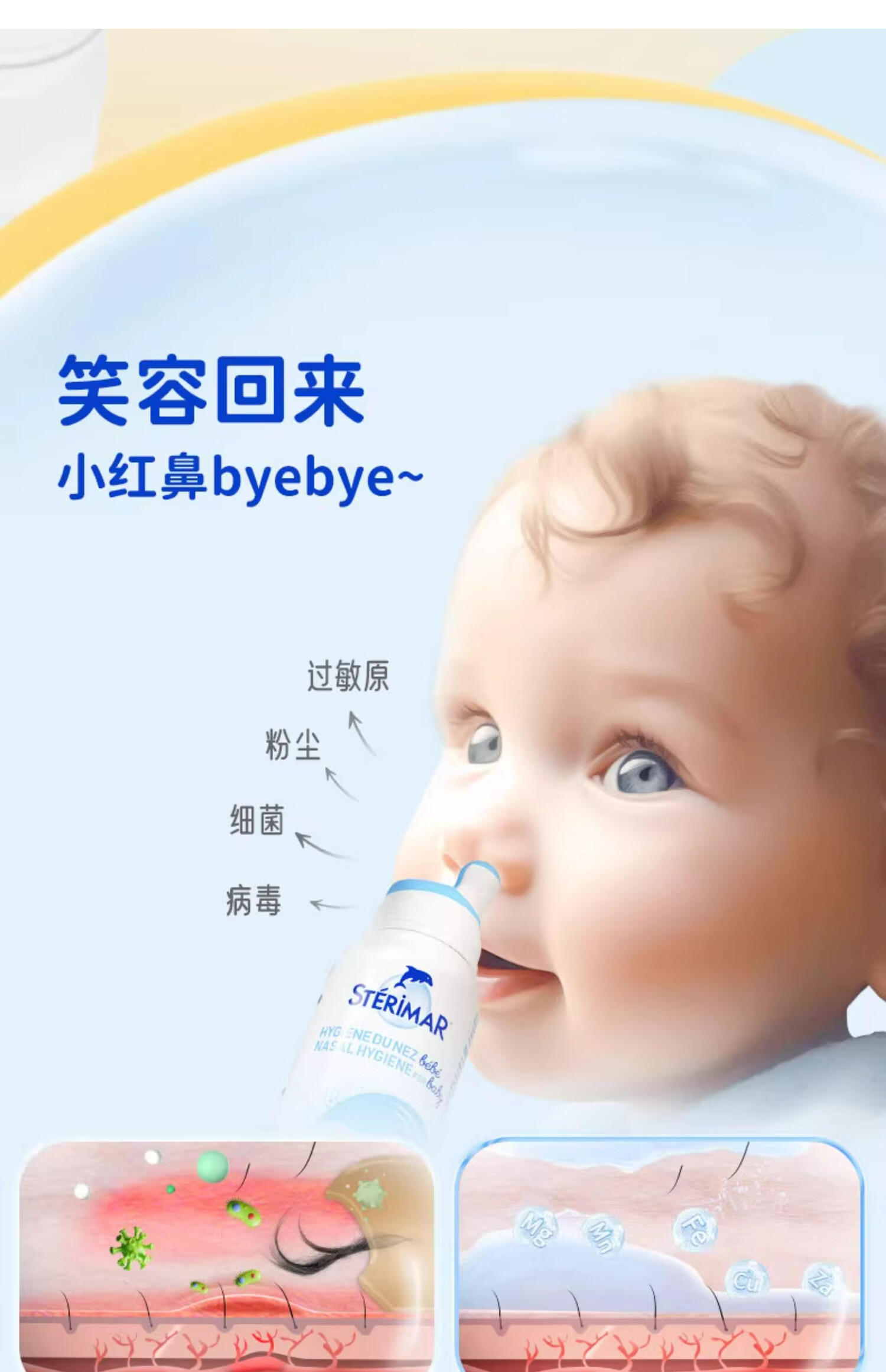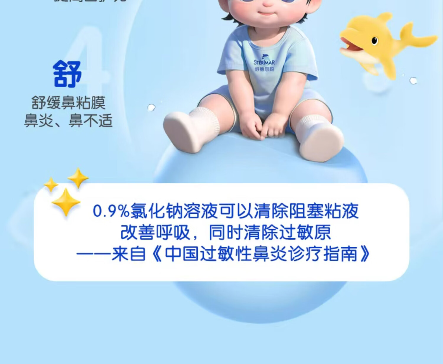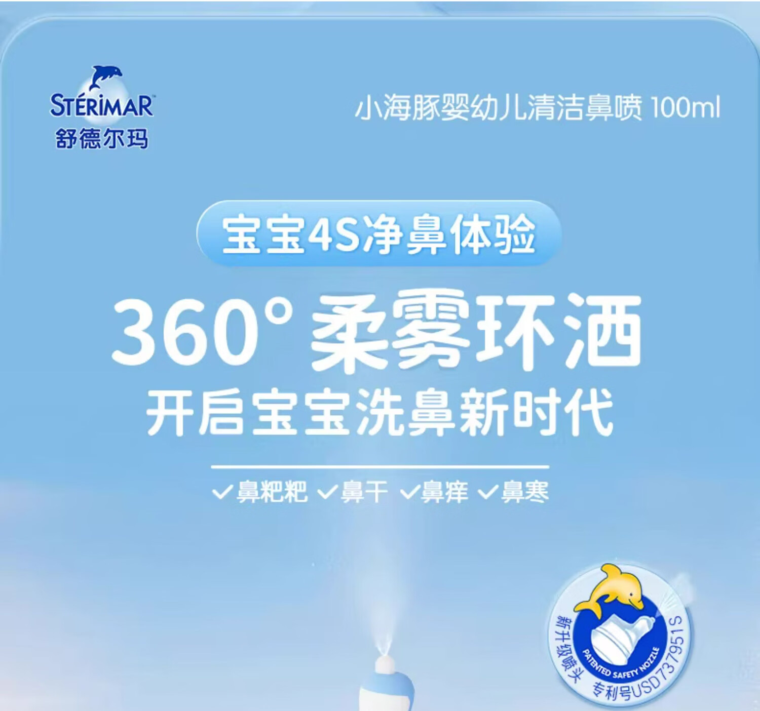STERIMAR Little Dolphin sea salt water nasal spray physiological sea water spray baby pacifier nozzle 100ml*2 bottles children's nasal wash