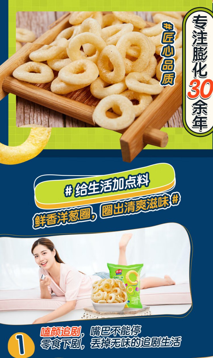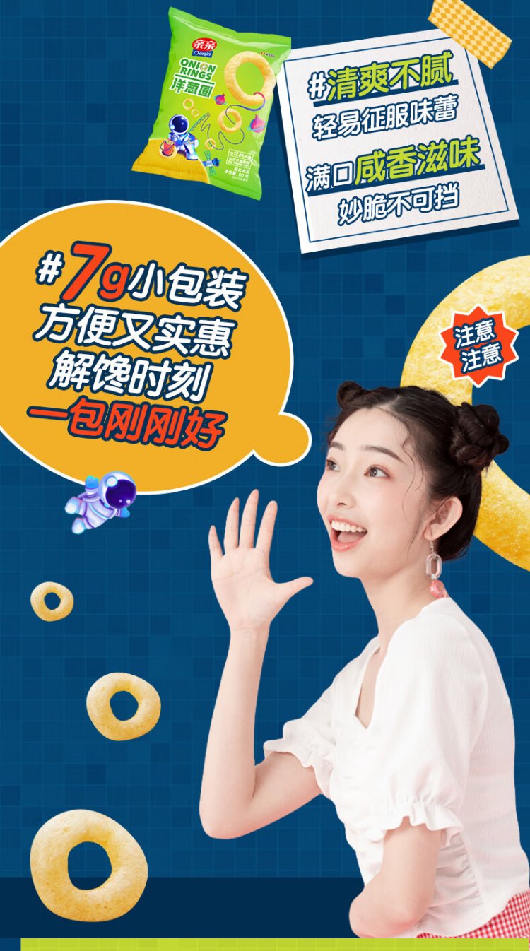 Qingqin Puffed Snacks Onion Rings Snack Food Gift Pack 7g*10 Pack Portable Snacks