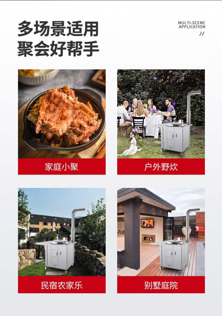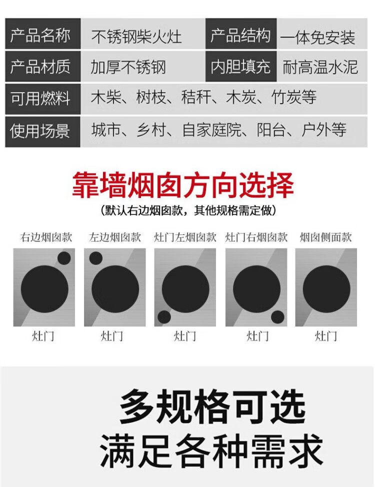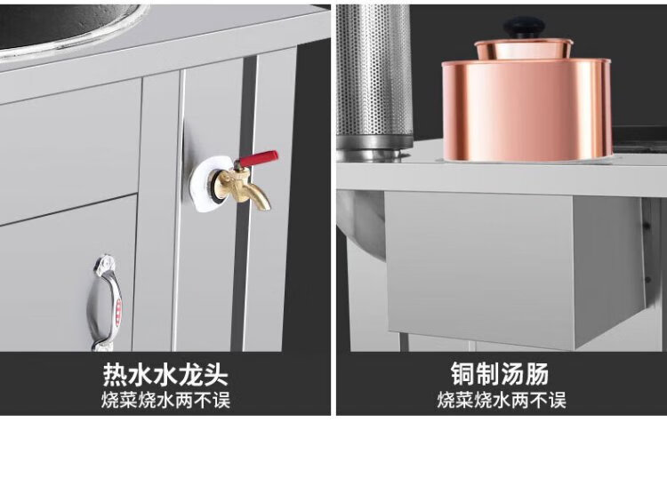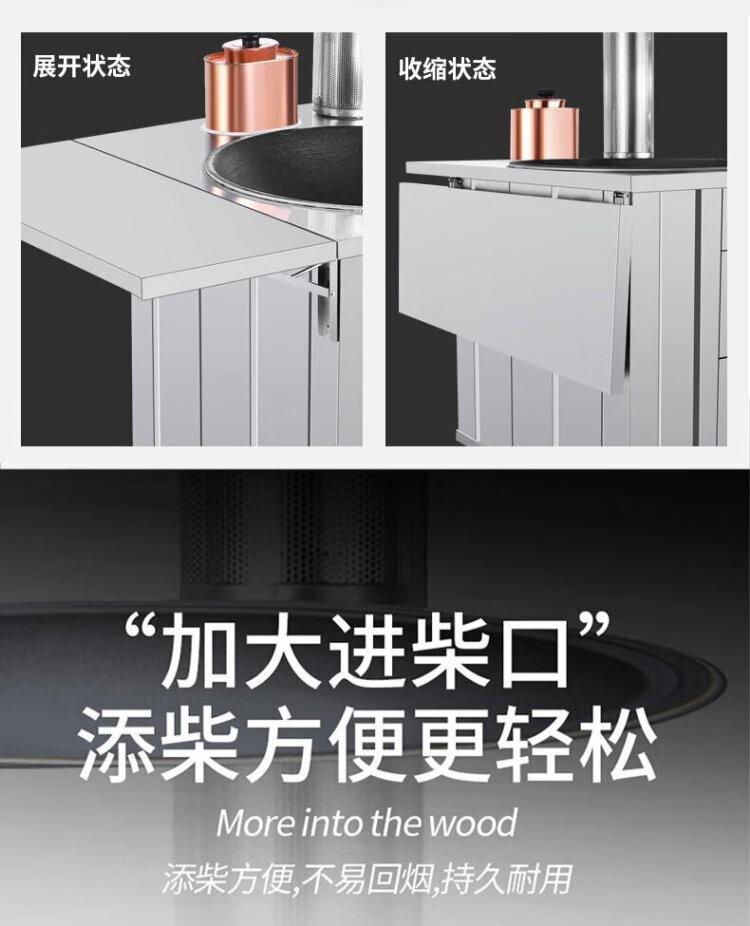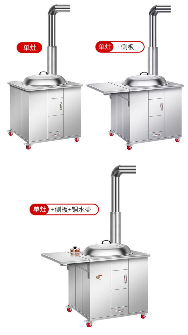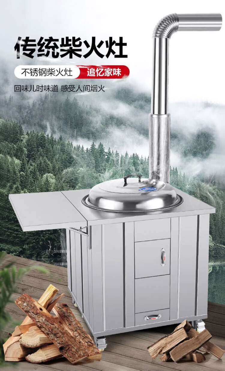 Geshu customized firewood stove rural household stove stainless steel smokeless large pot stove mobile firewood 71cm + side plate + copper kettle