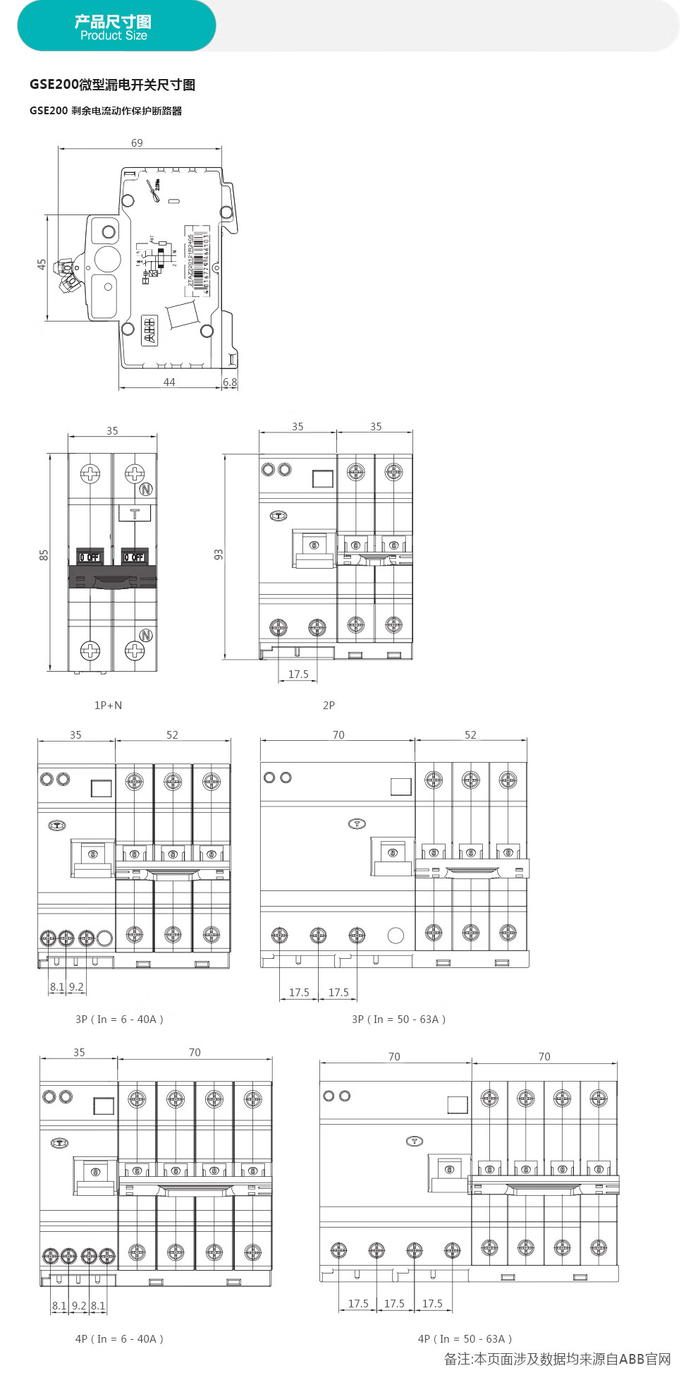 ABB air switch GSE201 series 230VAC 1P+N 16A electronic 30mA GSE201 AC-C16/0.03 10236256 leakage protection switch