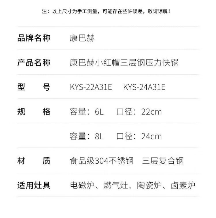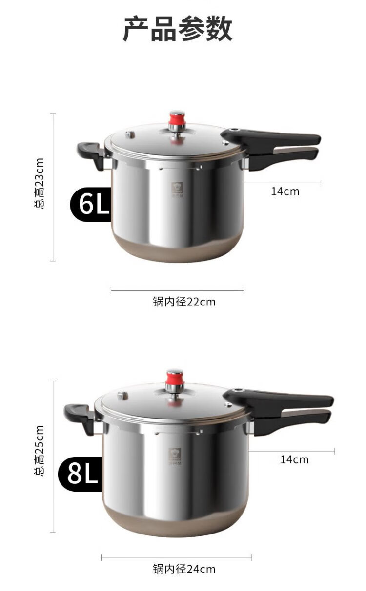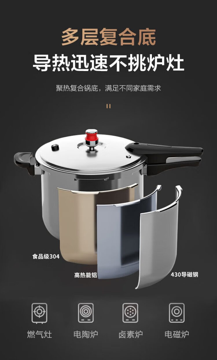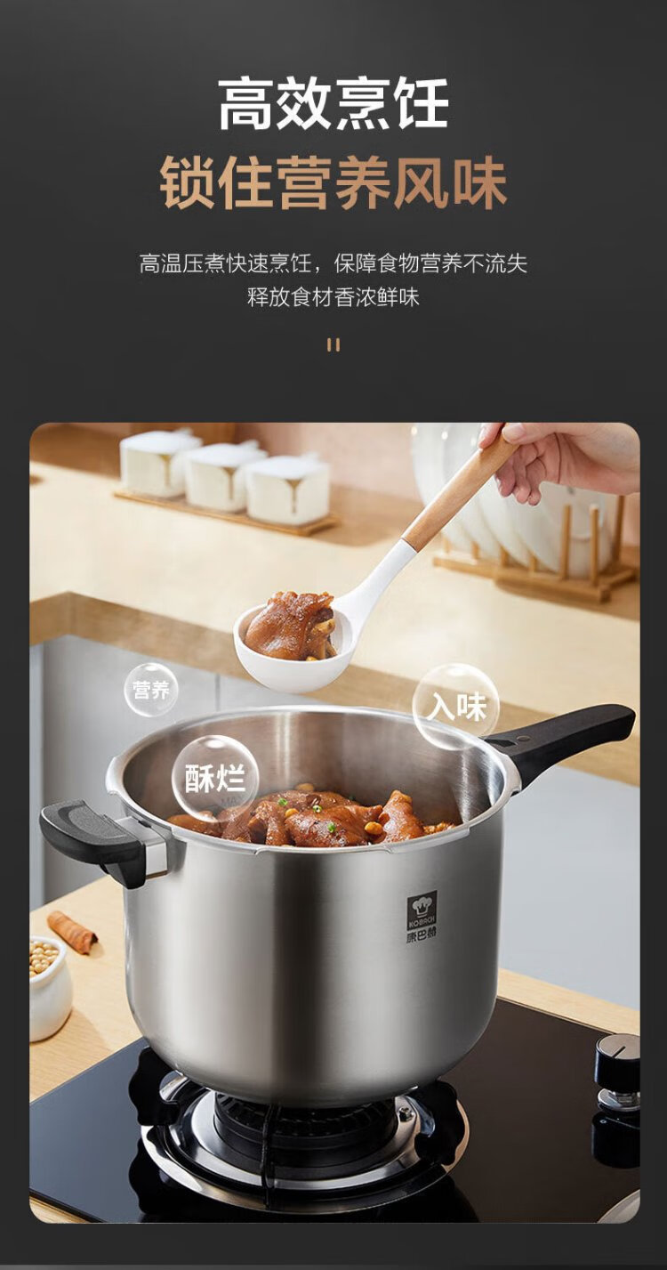 Konbach pressure cooker 304 stainless steel pressure cooker explosion-proof fast cooking household large capacity 8L induction cooker gas stove universal