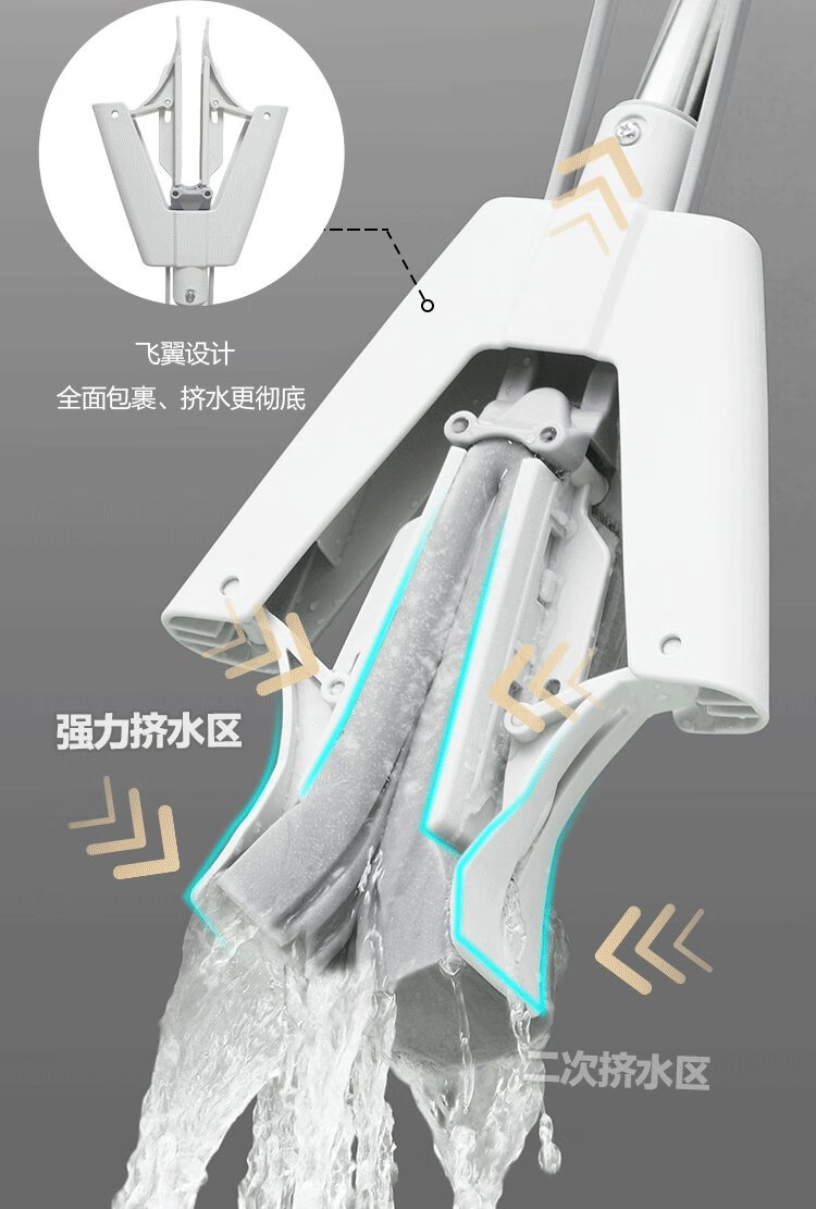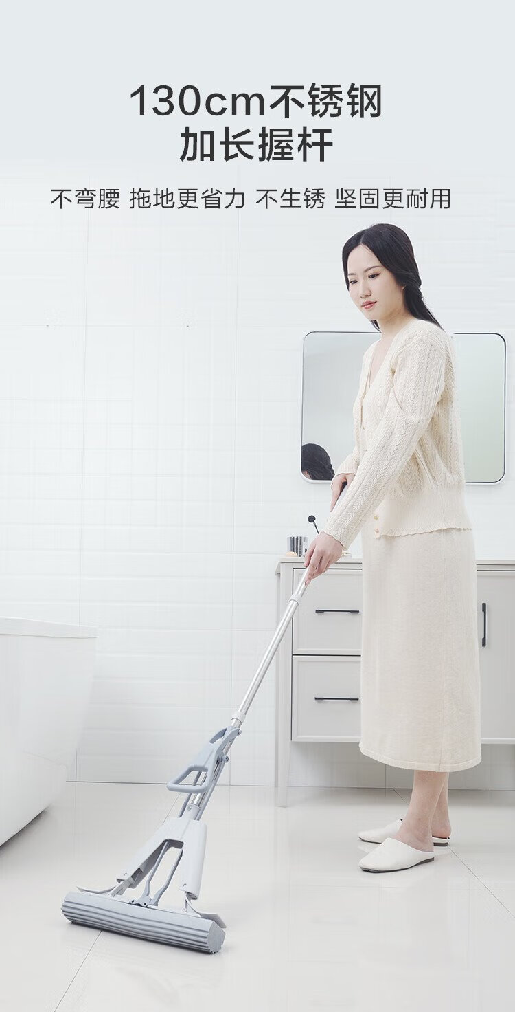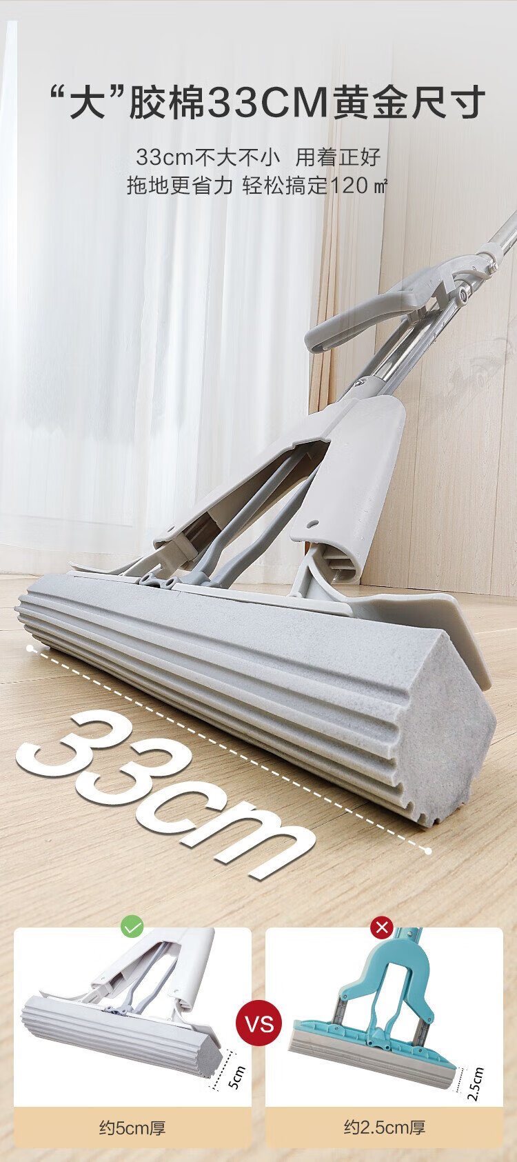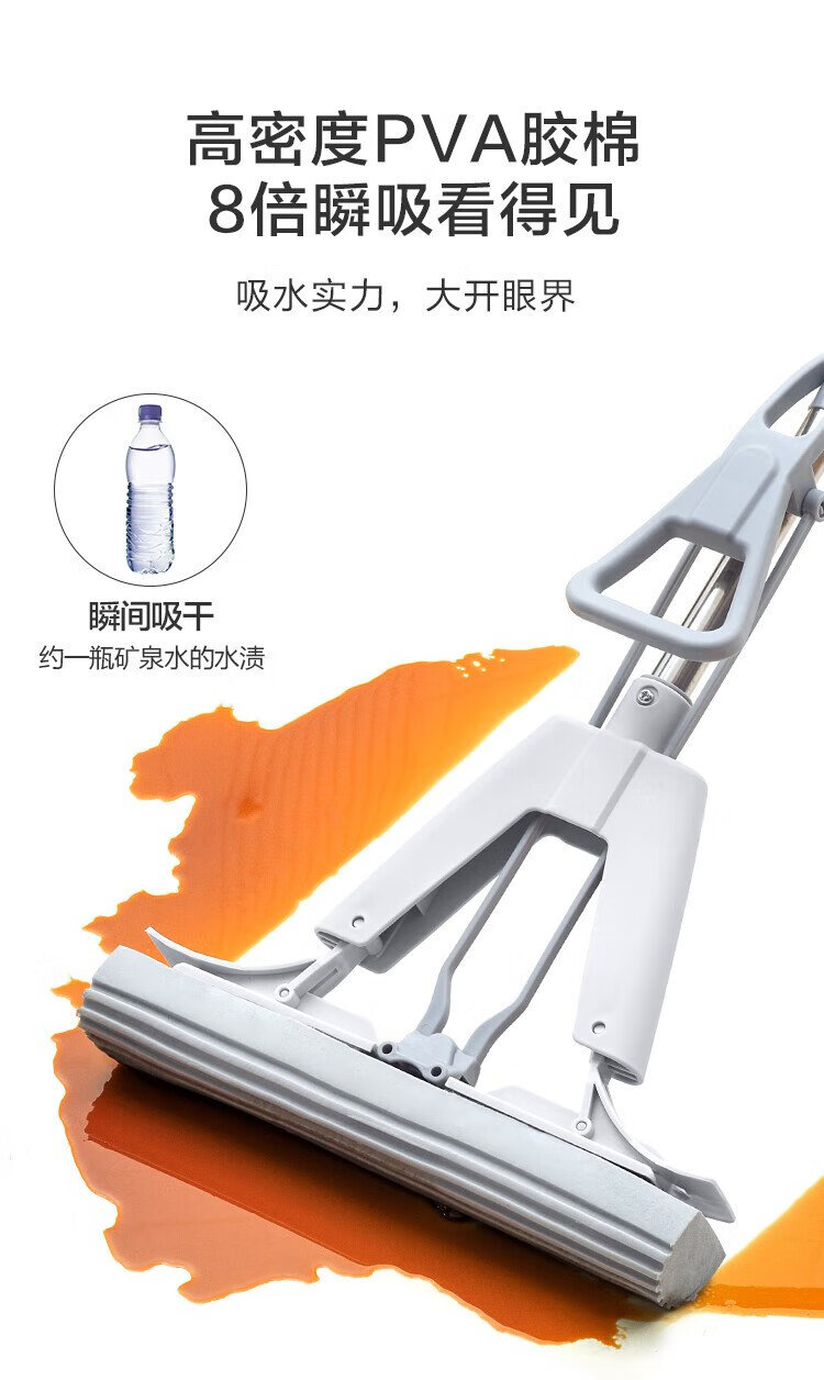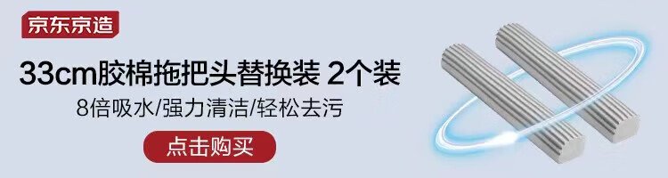 Jingdong-made half-fold sponge mop 33cm, collodion water-absorbent, hand-wash-free household mopping tool, one mop, including cotton head*2