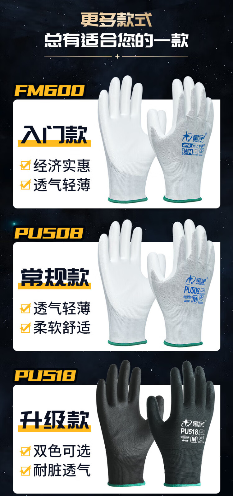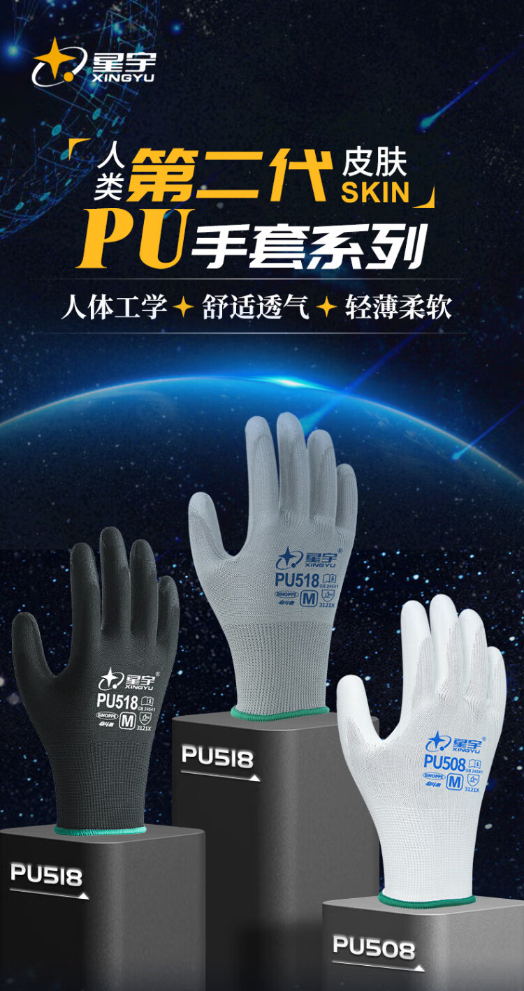 Xingyu dipped labor protection gloves PU coated palms summer breathable non-slip lightweight electronics factory assembly protection 12 pairs/pack PU518 gray L genuine licensed goods