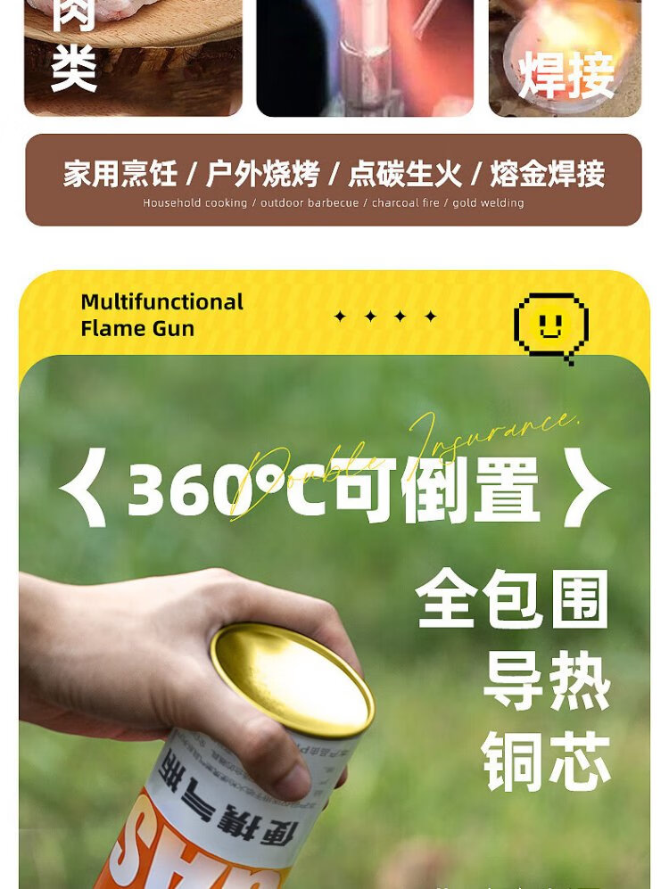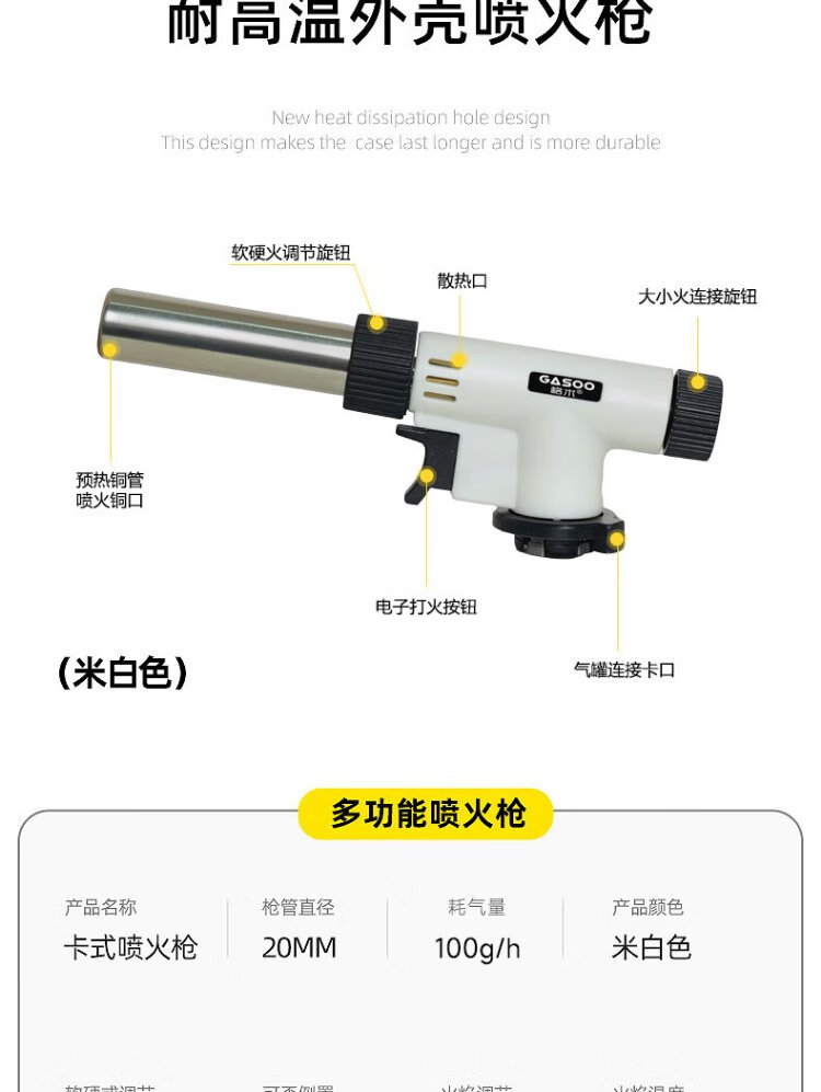 Geshu flamethrower spray gun flamethrower gas tank nozzle fire burning pig hair outdoor barbecue igniter high temperature baking