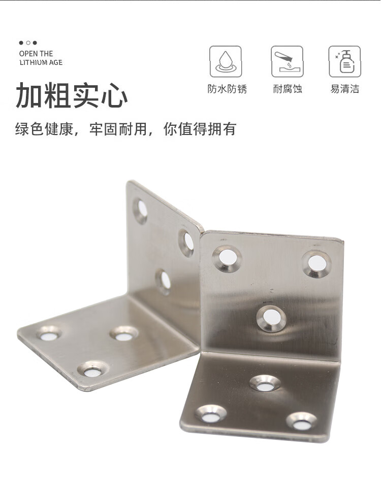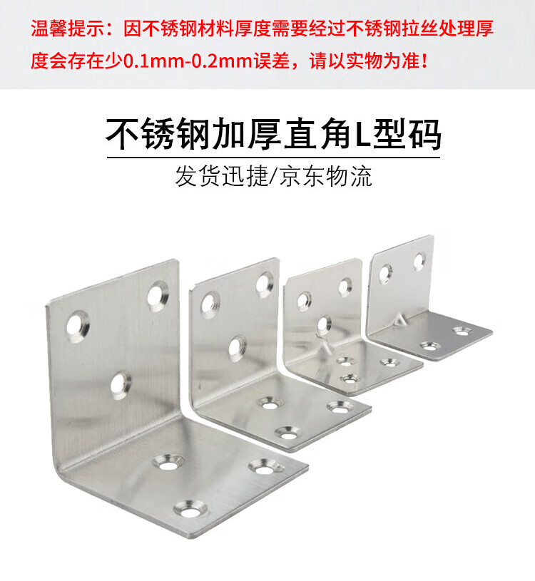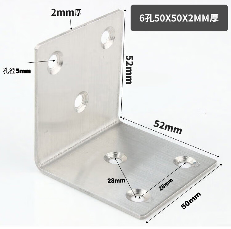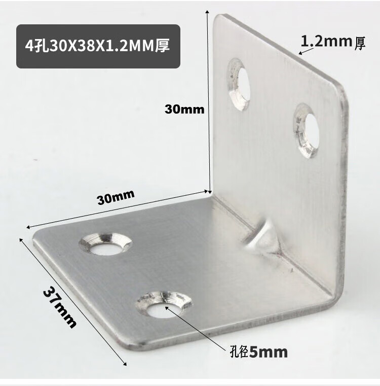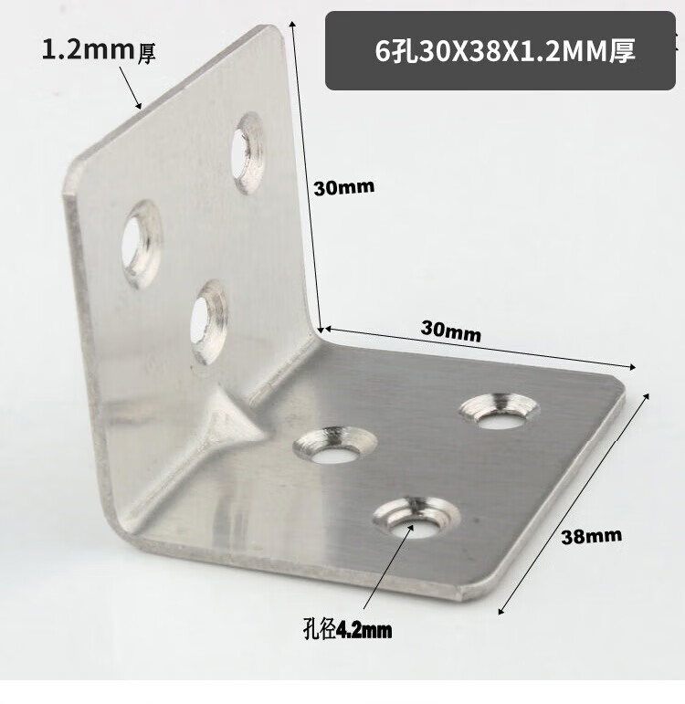 Hasdick stainless steel corner code, thickened 90-degree right-angle L-shaped code, angle iron bracket fixture, with mounting screws, 6 holes, 30*38*1.2mm thick (10 pieces) HKsq-271