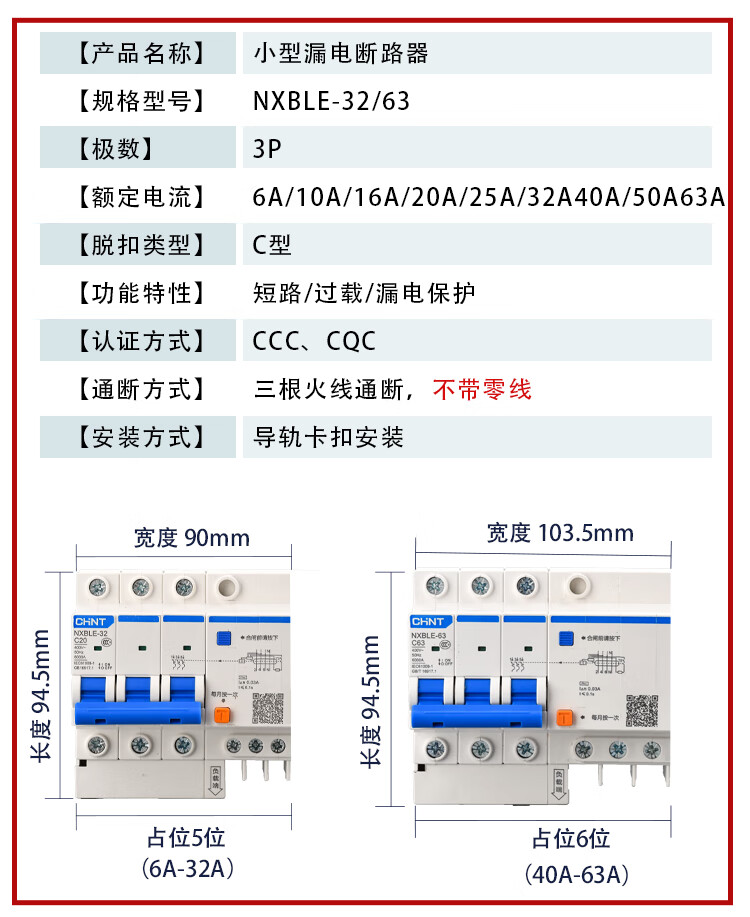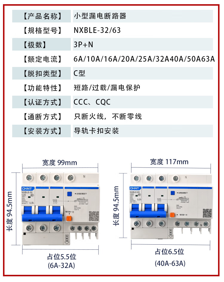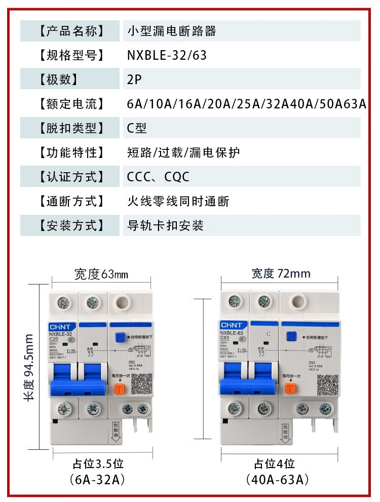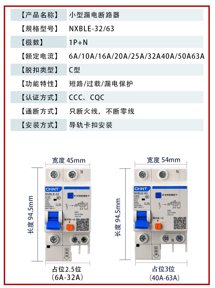 Chint (CHNT) leakage protector NXBLE-32-1P+N-C16 air switch small short-circuit protection circuit breaker 16A