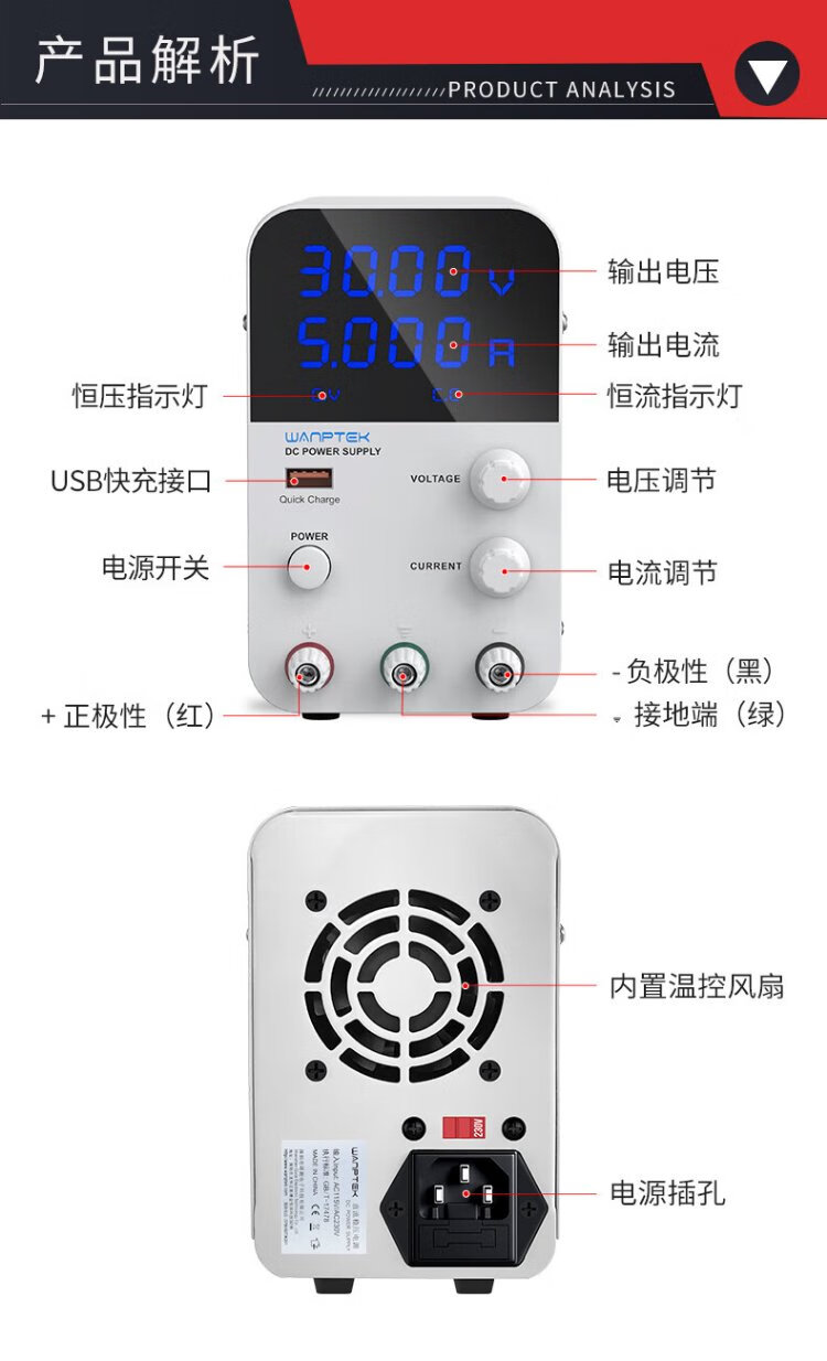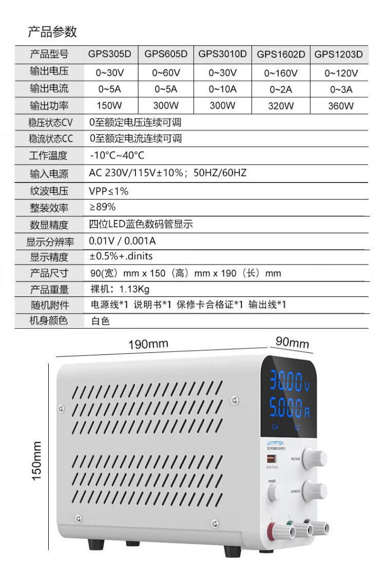 Wanptek solid test GPS3010D adjustable DC regulated power supply 30V10A laptop mobile phone repair power supply switching power supply