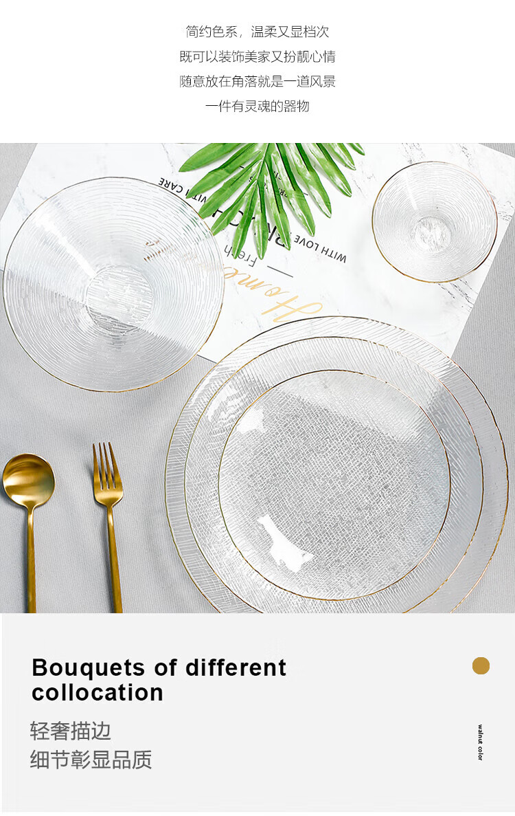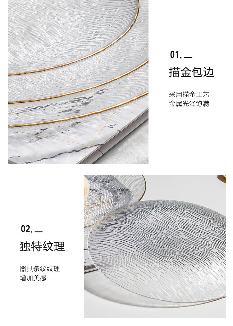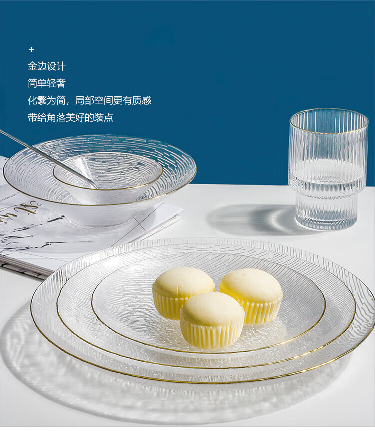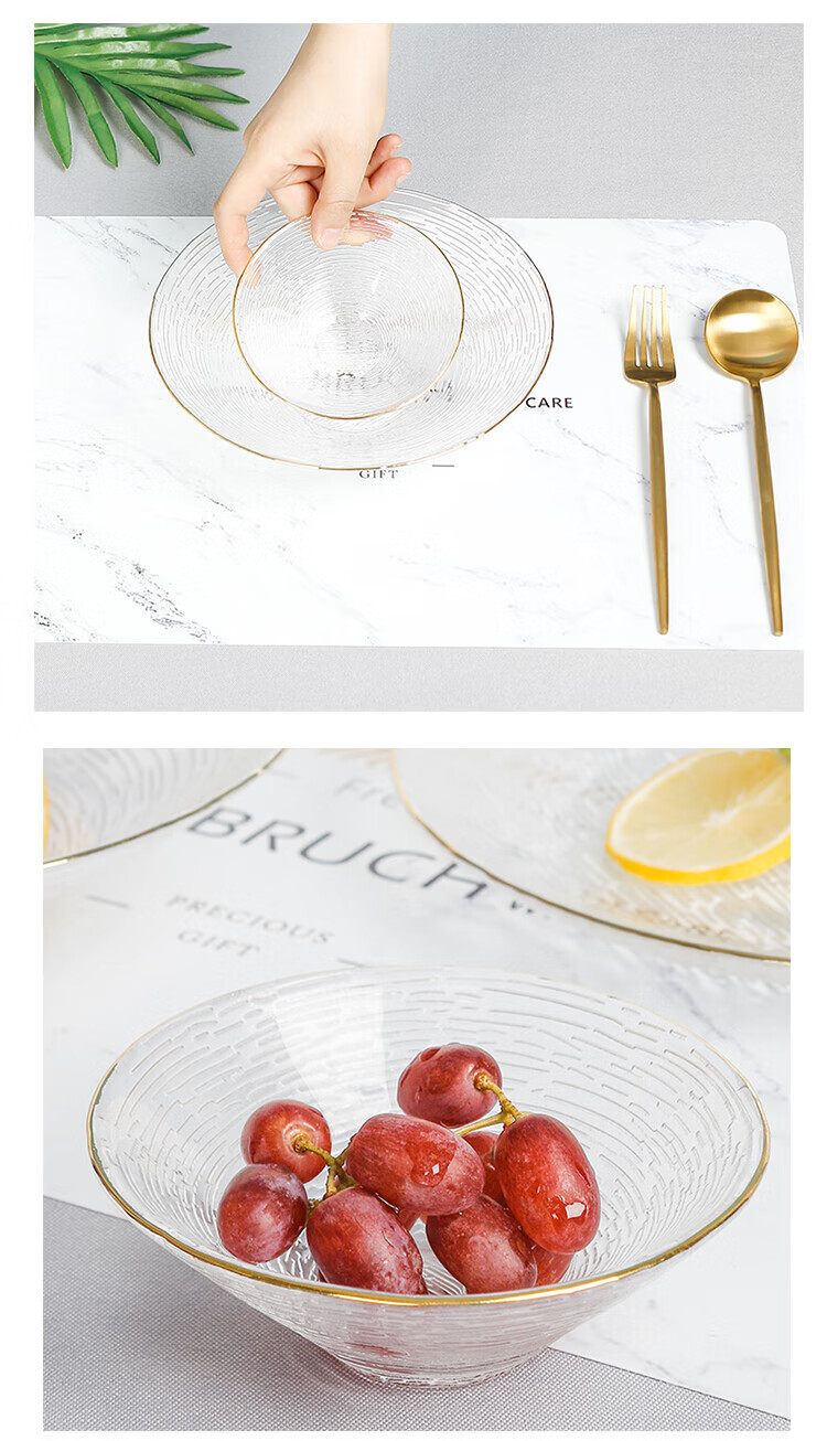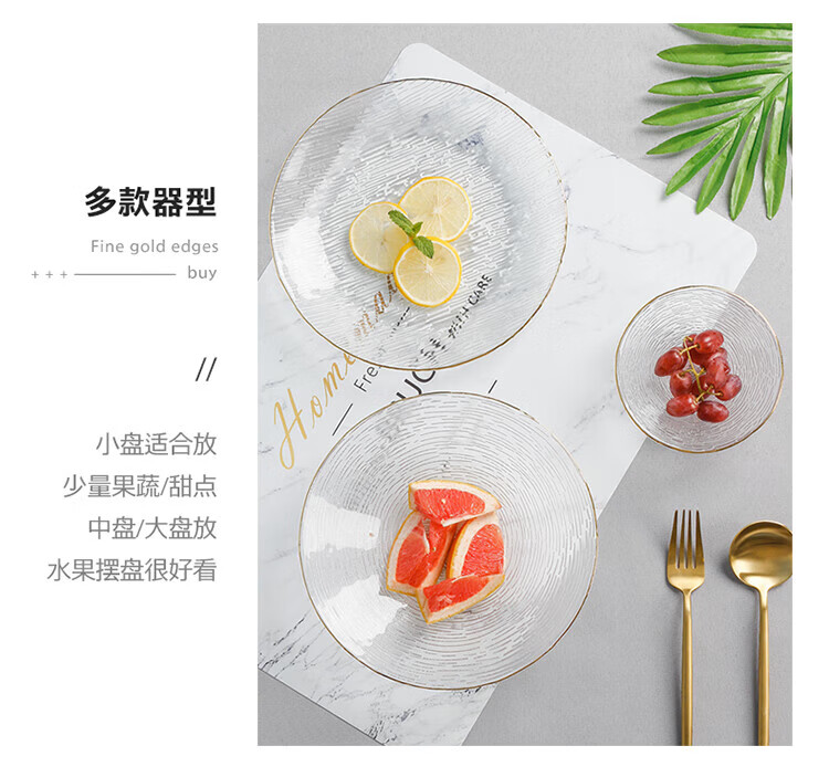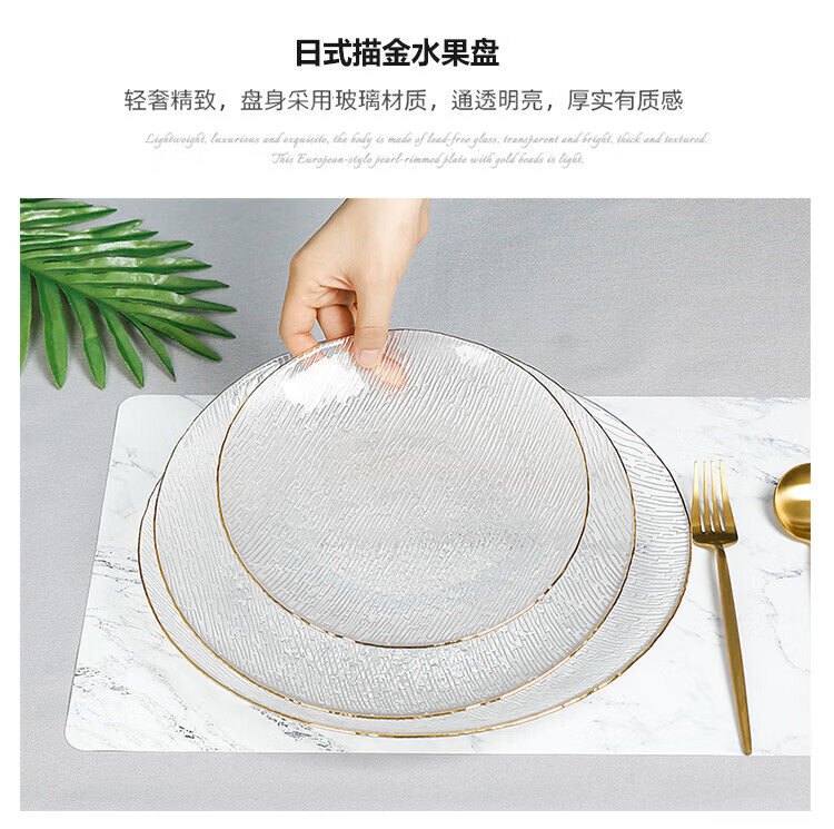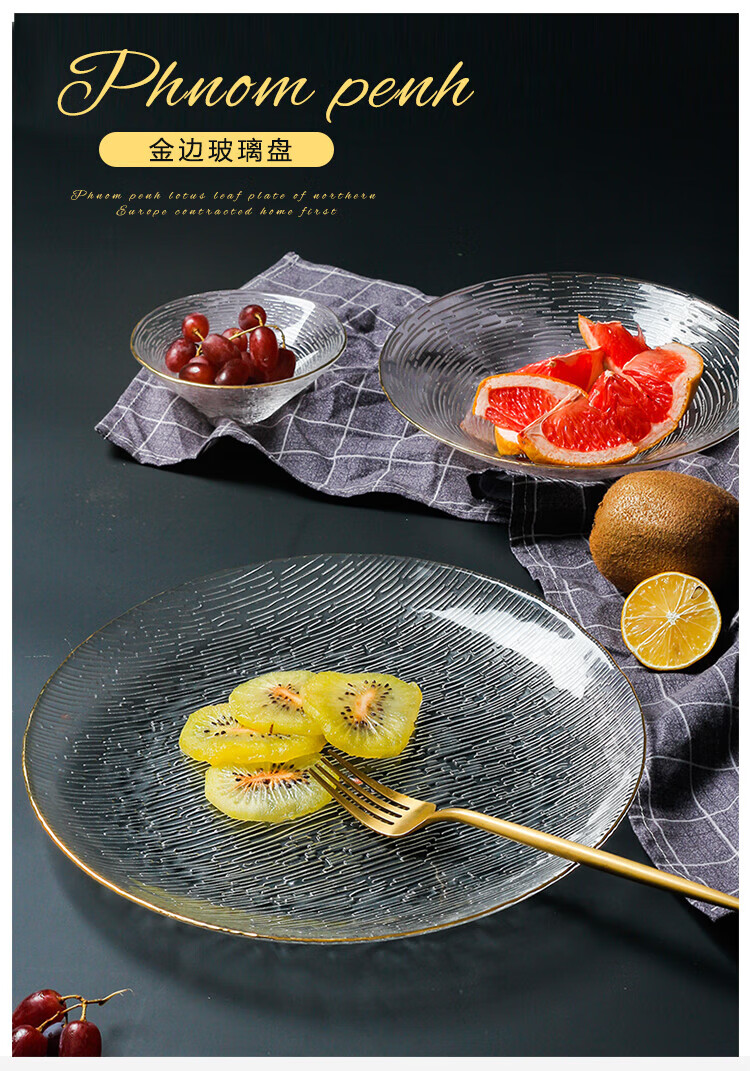 Yijia Glass Fruit Plate Light Luxury Style Dessert Plate Fruit Plate Dried Fruit Snack Plate High-end Glass Dessert Plate 2 Plate