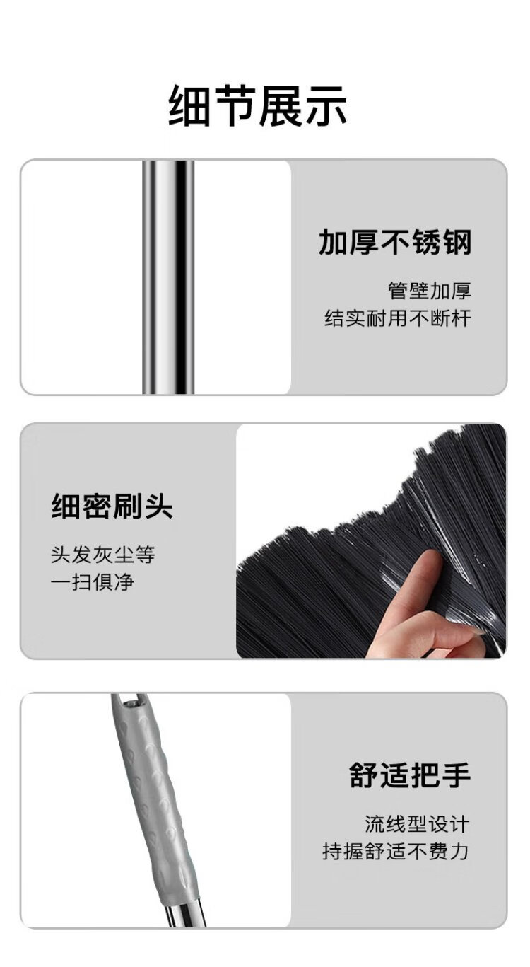 Mandelai broom soft broom sweeping broom hair sweeping water sweeping dust plastic broom single high-grade gray