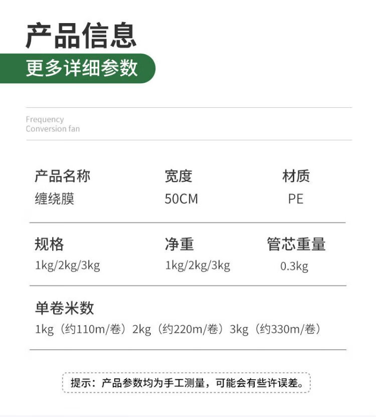 Jiuqiangu stretch film 50cm*330m film net weight 3kg*1 roll express moving packaging protective film PE industrial cling film packing film waterproof protective film stretch film