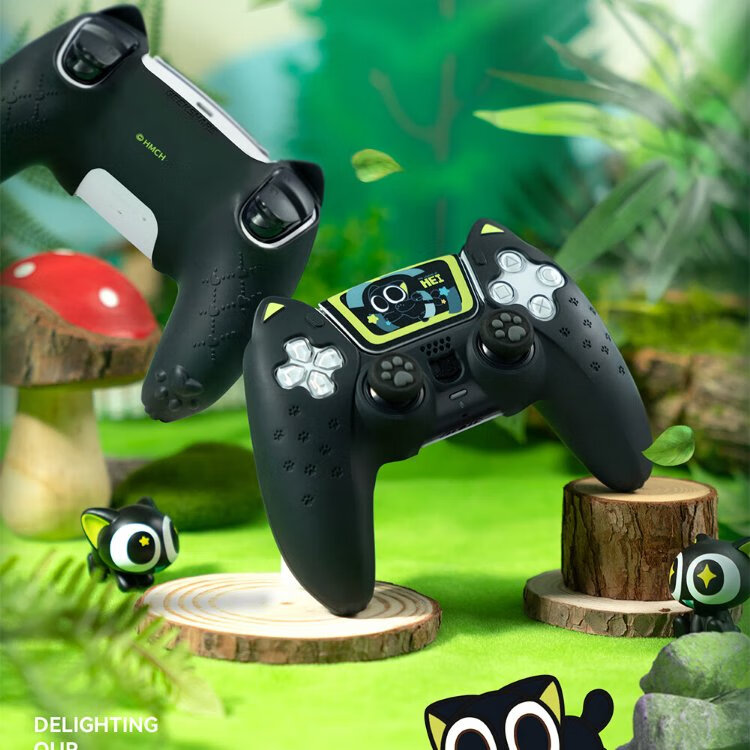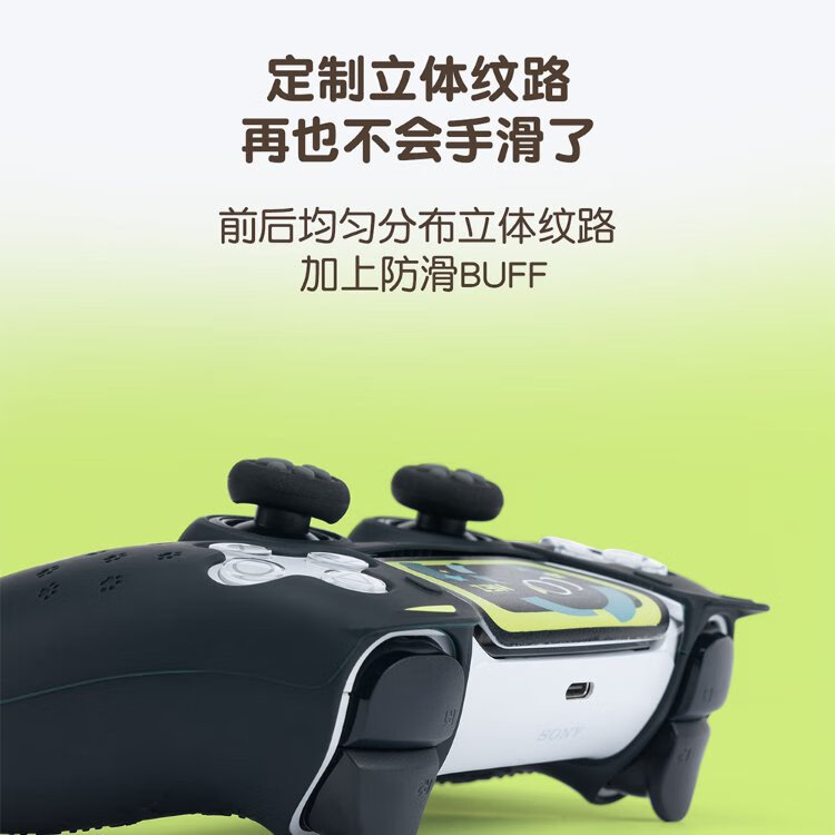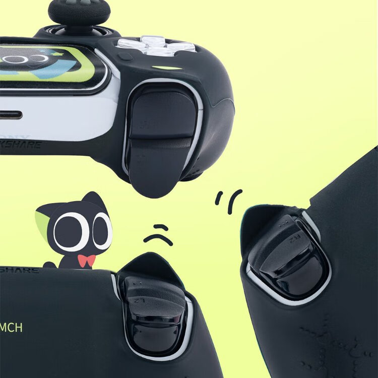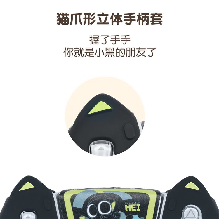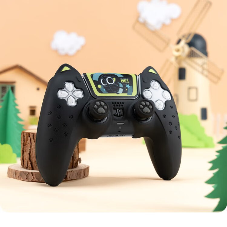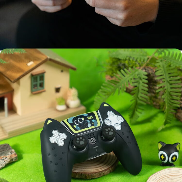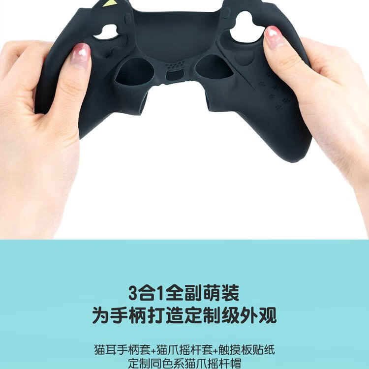 Jixiang PS5 controller protective cover, Luo Xiaohei controller cover, upgraded anti-slip sweat-absorbing silicone protective cover, black cat ears with rocker cap set, game peripheral accessories
