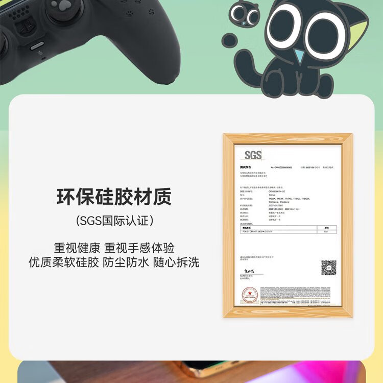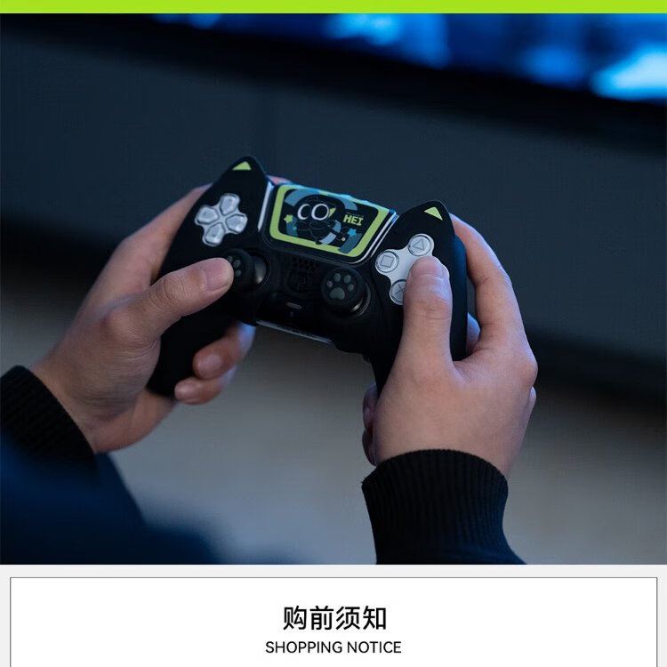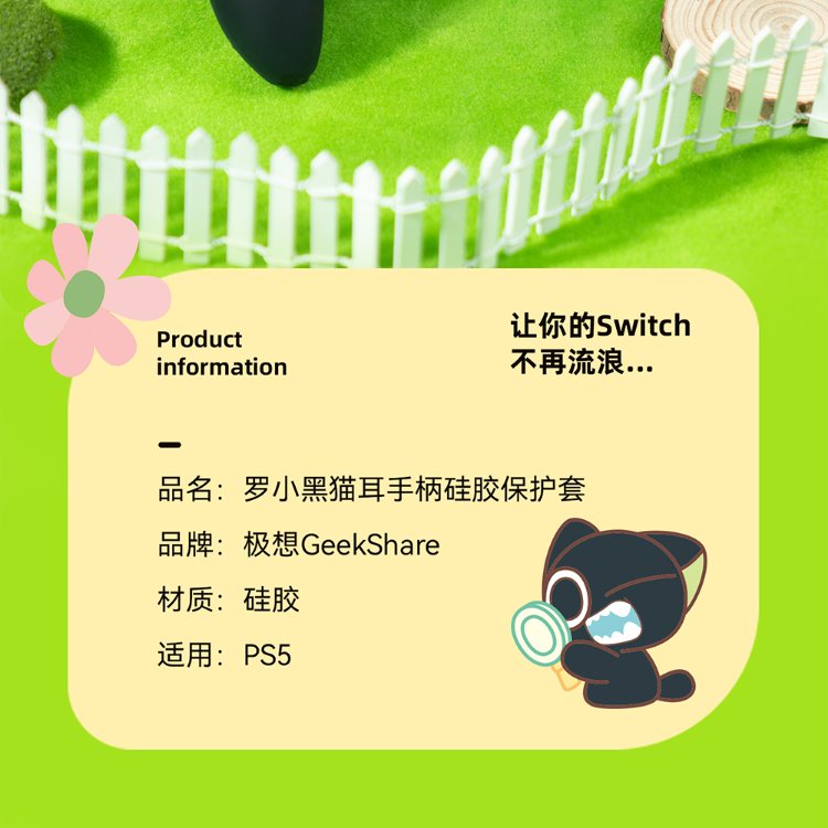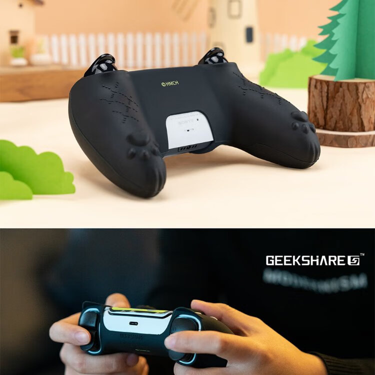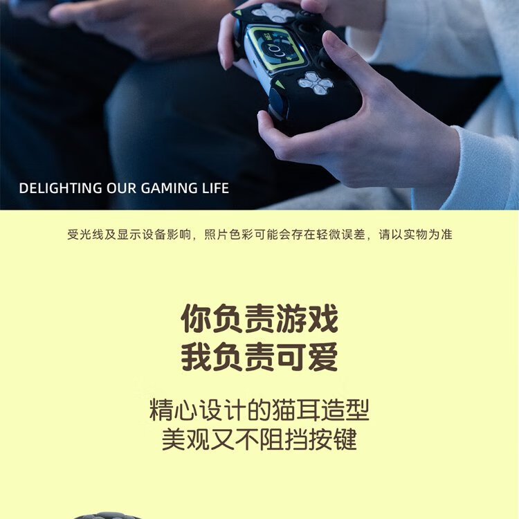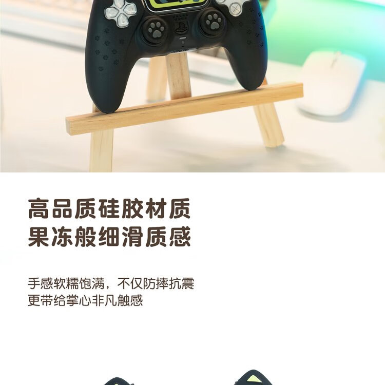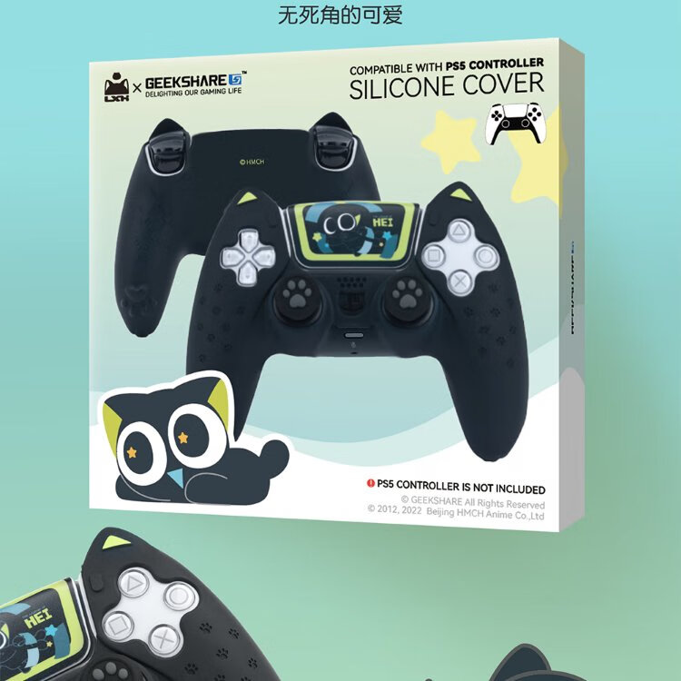 Jixiang PS5 controller protective cover, Luo Xiaohei controller cover, upgraded anti-slip sweat-absorbing silicone protective cover, black cat ears with rocker cap set, game peripheral accessories