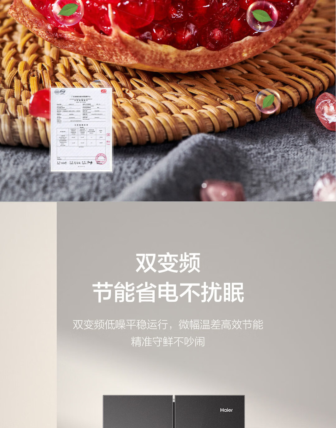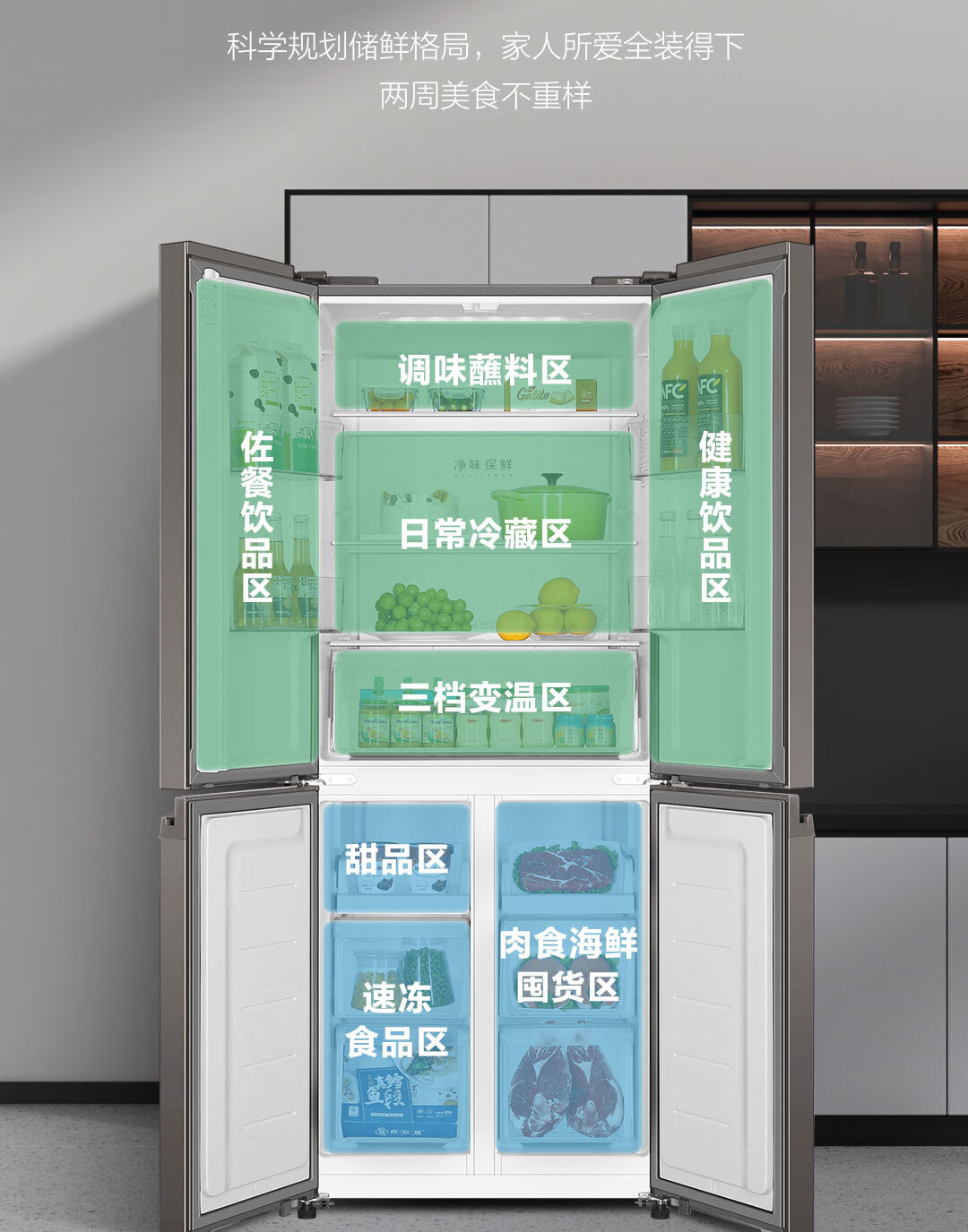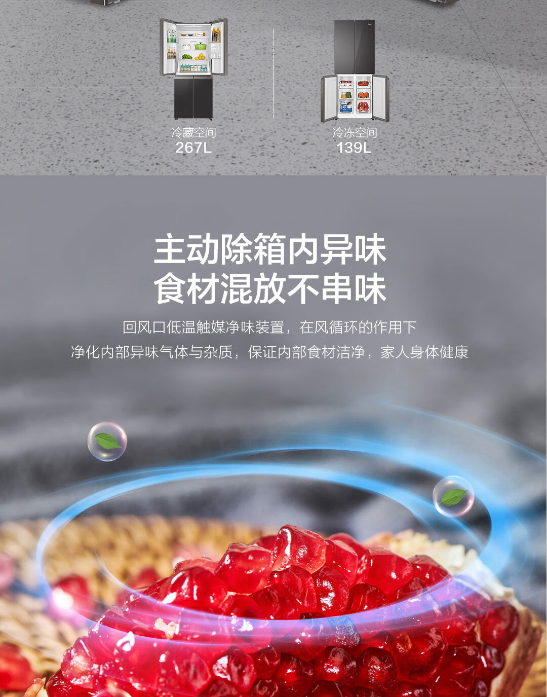 Haier (Haier) 406L Cross Door Refrigerator Color Crystal Frequency Converter 1-level Three-speed Variable Temperature Maternal and Infant Treasures Zero DEO Pure Odor BCD-406WLHTDEDSLU1 National Subsidy