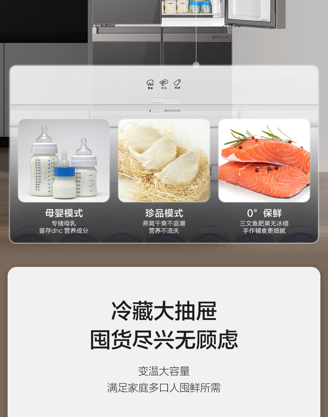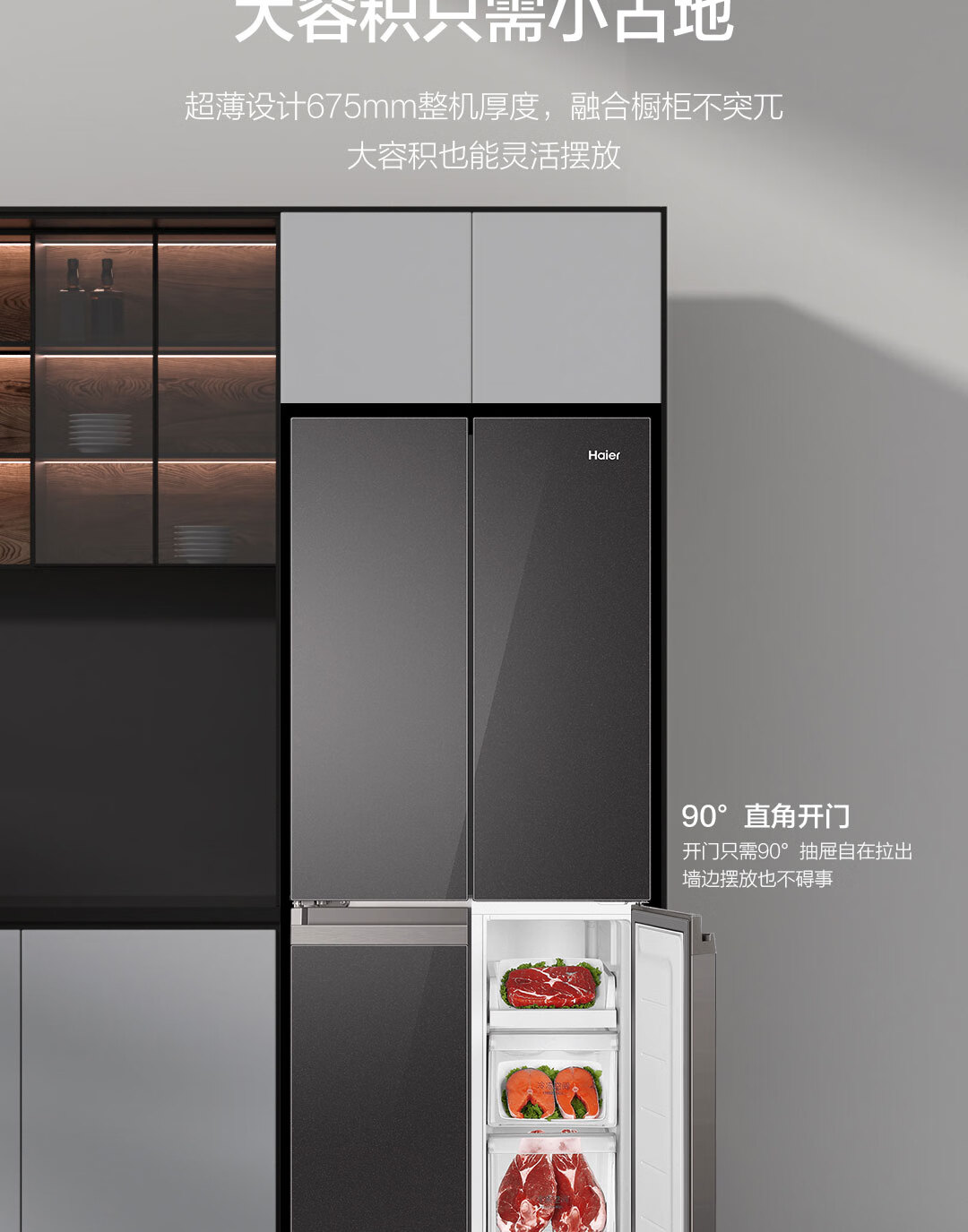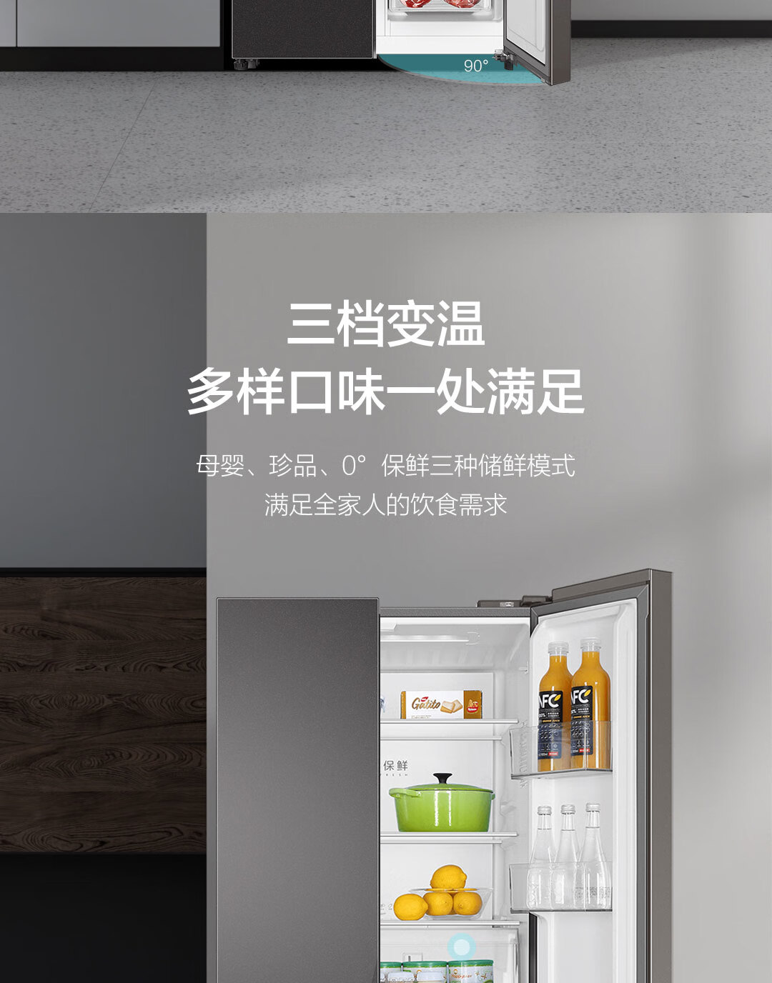 Haier (Haier) 406L Cross Door Refrigerator Color Crystal Frequency Converter 1-level Three-speed Variable Temperature Maternal and Infant Treasures Zero DEO Pure Odor BCD-406WLHTDEDSLU1 National Subsidy