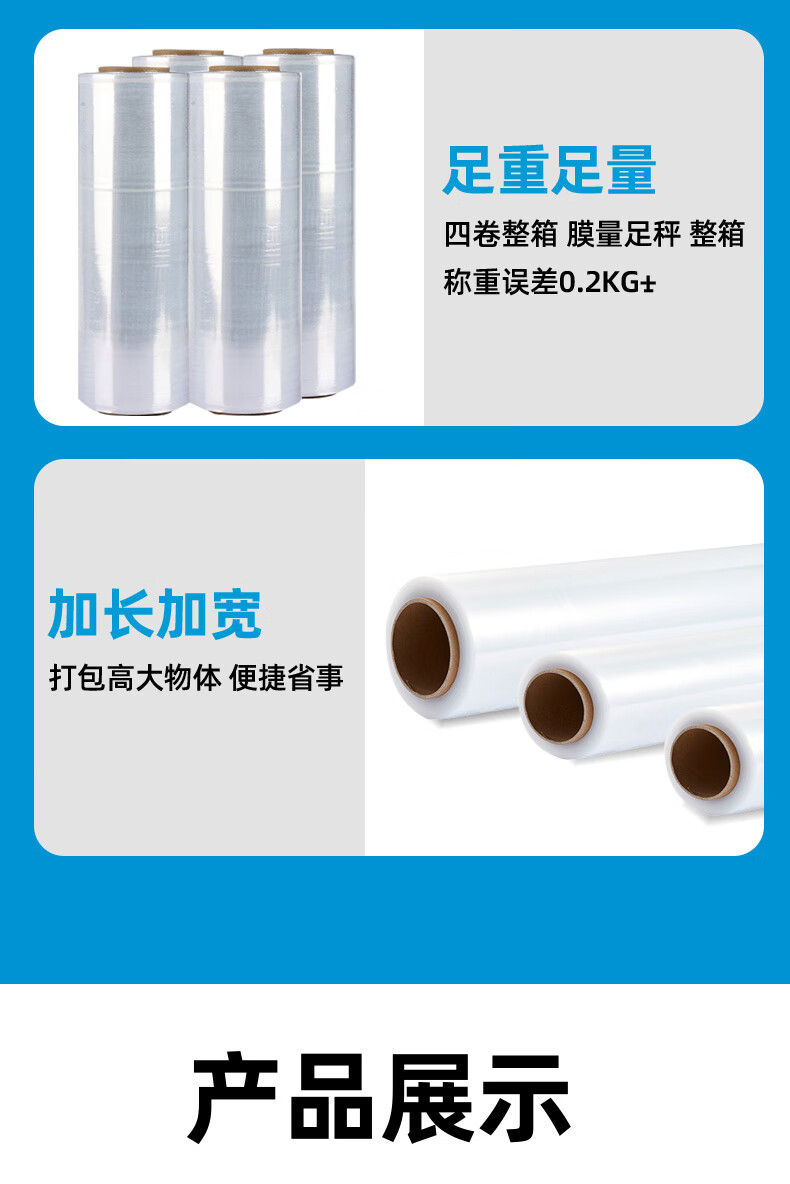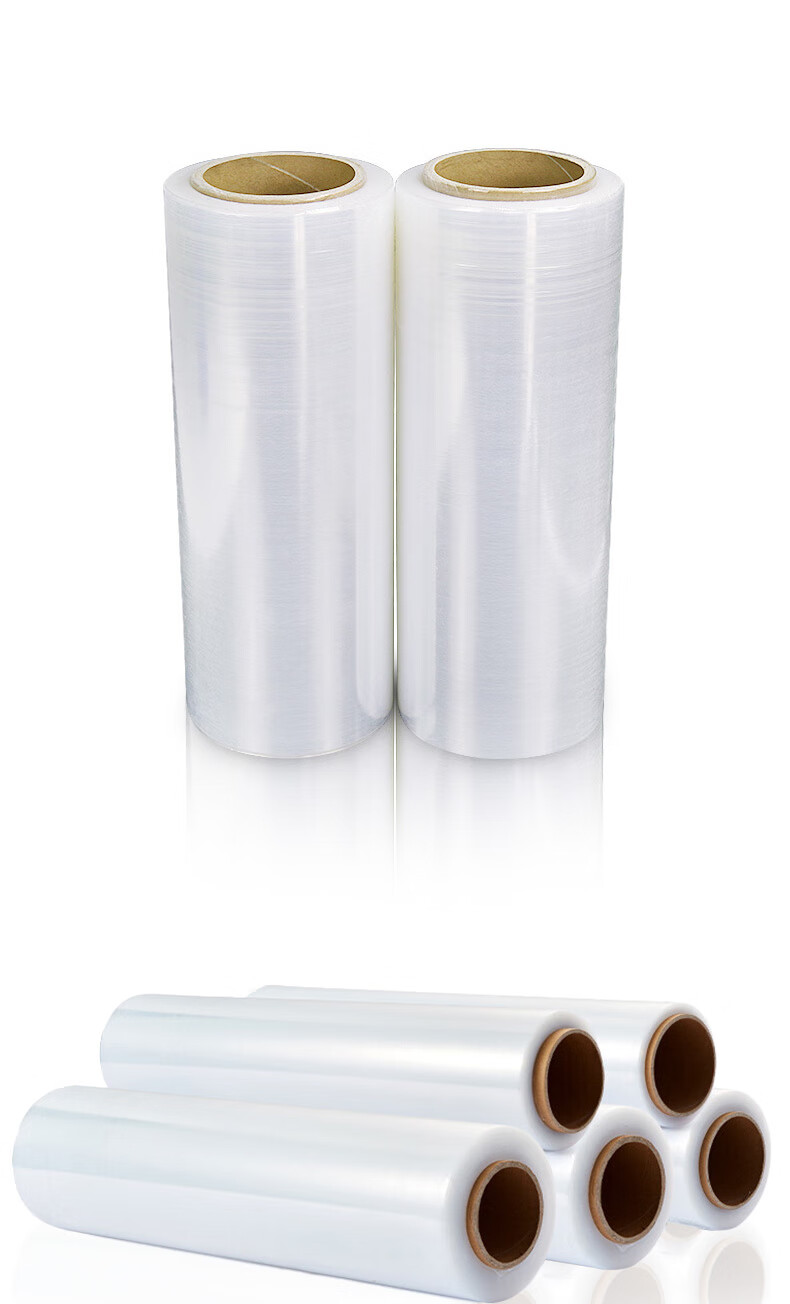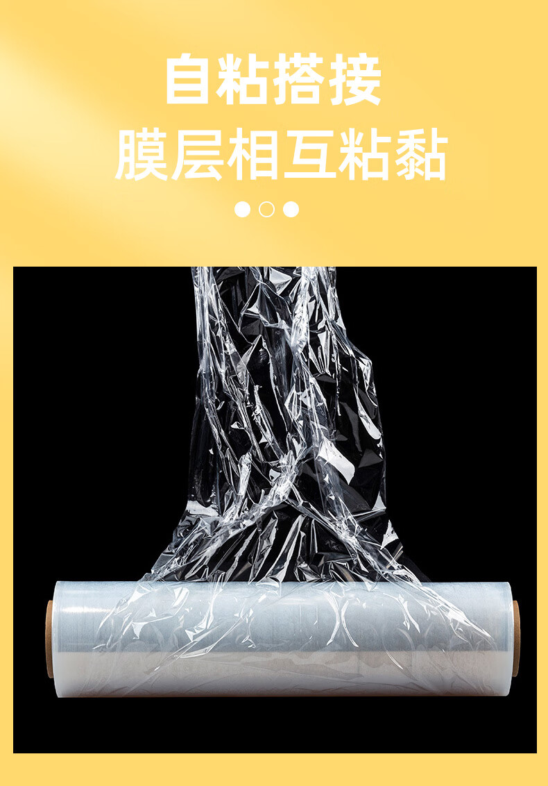 Green orange pe stretch wrapping film, industrial use, width 50cm, length 200m, high-viscosity packaging film, transparent film, large roll box, gross weight 1.5kg/roll, net weight 1.2kg/roll