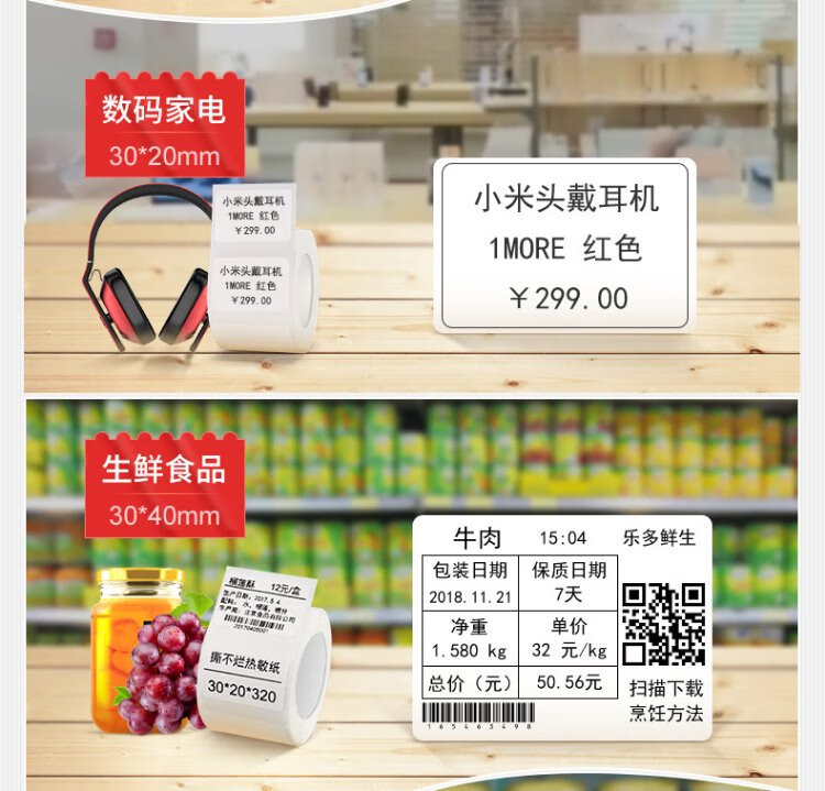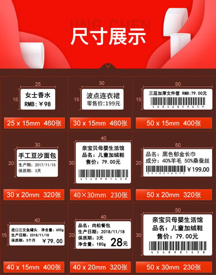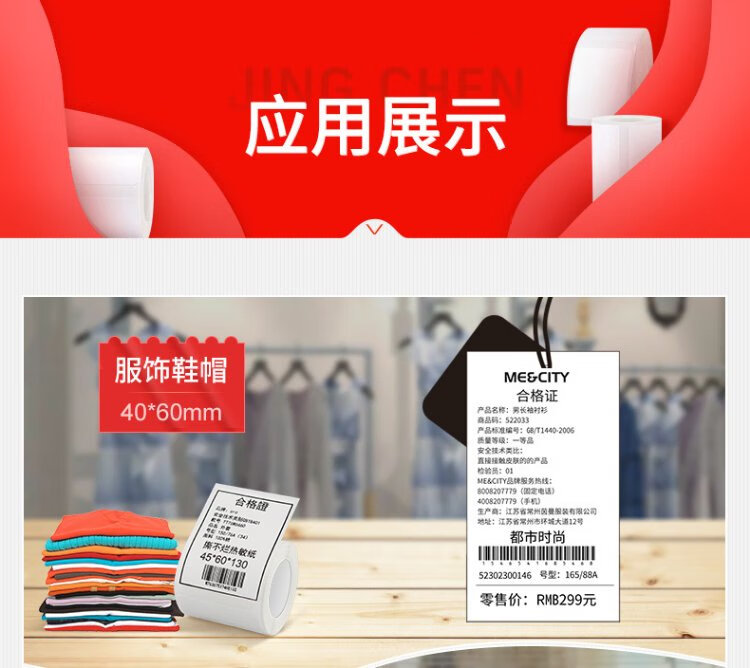 Jingchen thermal paper B3SB21 clothing department label paper 40*30 self-adhesive commercial office printing paper B203 suitable for B203 thermal machine