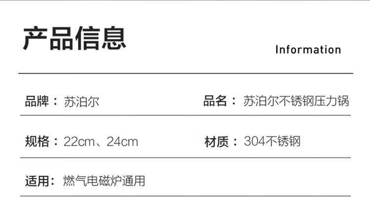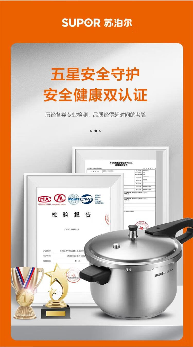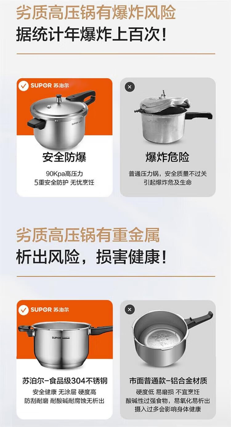 SUPOR pressure cooker 304 stainless steel 24cm pressure cooker gas universal safety explosion-proof large size YW243FB1