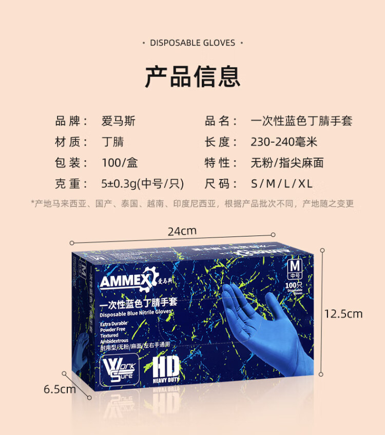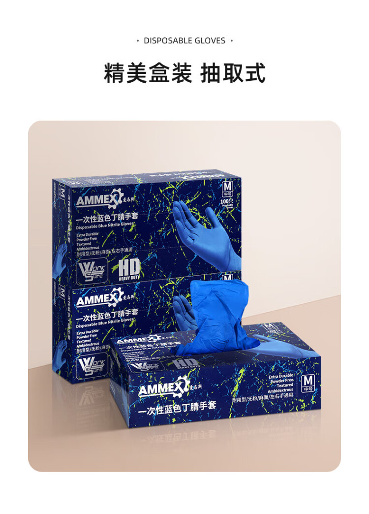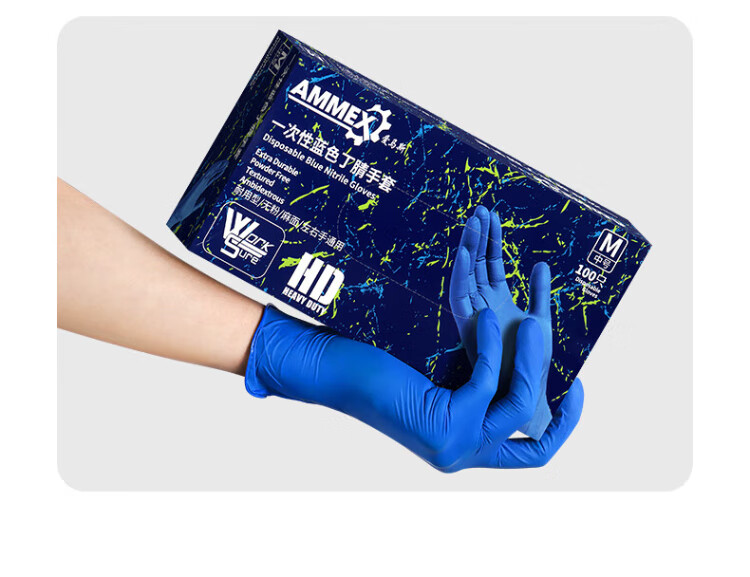 Emmaus disposable nitrile gloves, thick and durable, oil-proof, acid-alkali-resistant, laboratory industrial cleaning 100 pieces/box, blue APFNCHD, medium size