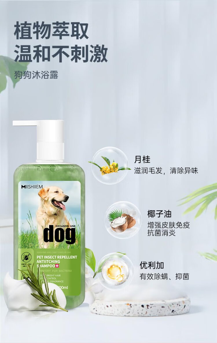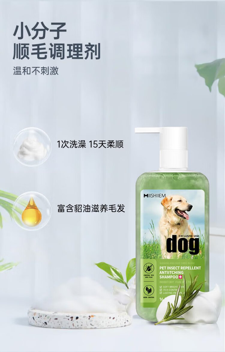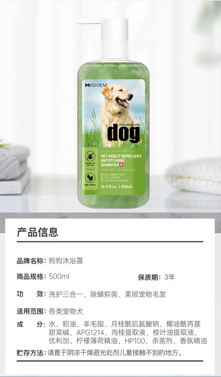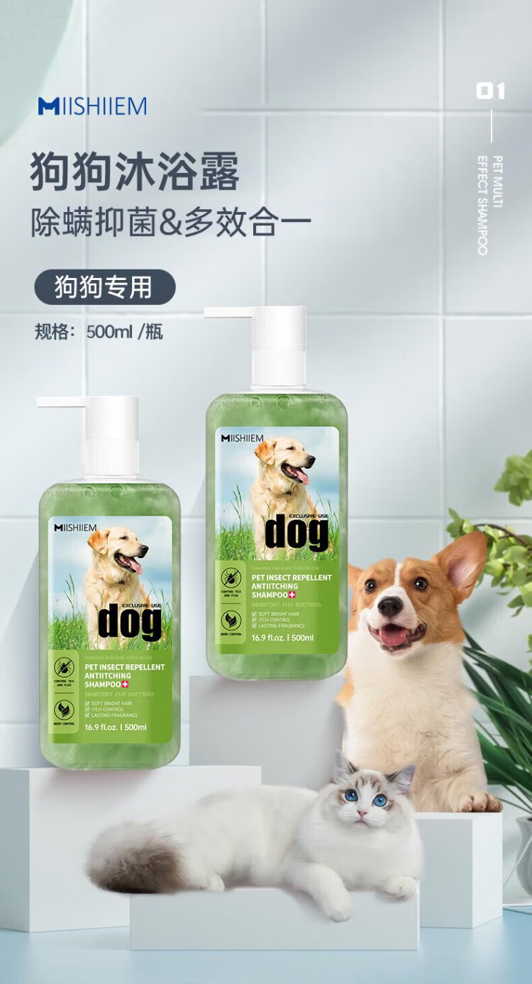 MIISHIIEM British dog special shower gel to keep away ticks and fleas, remove mites, remove bacteria and relieve itching 500ml