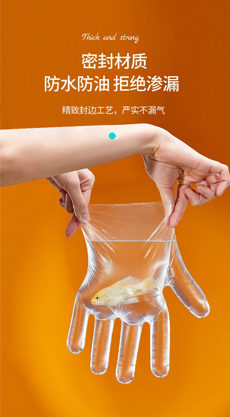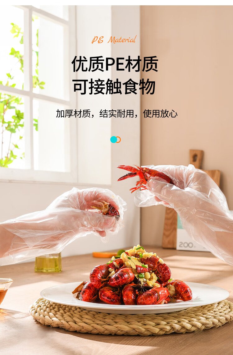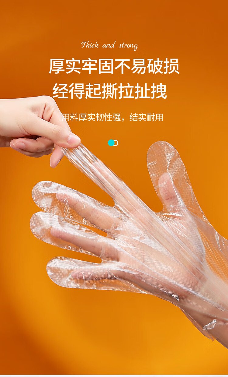 Youao disposable gloves 200 pieces, thickened, removable plastic PE leak-proof for food, household kitchen, transparent baking