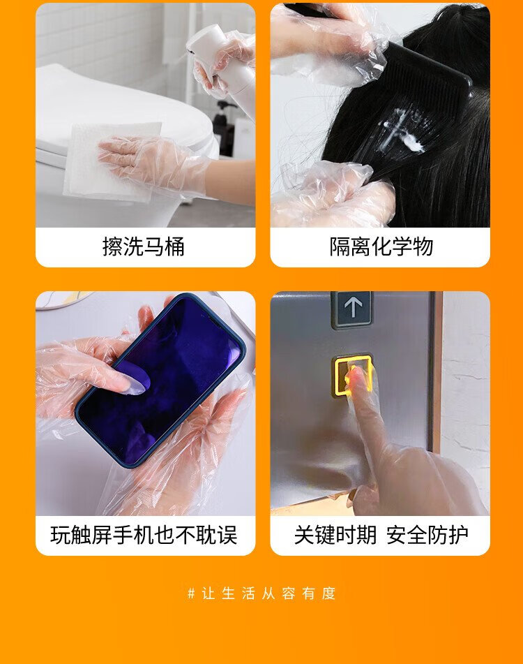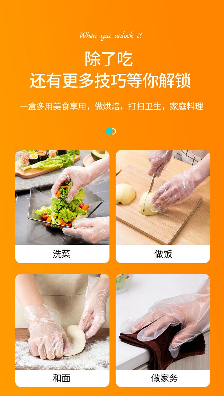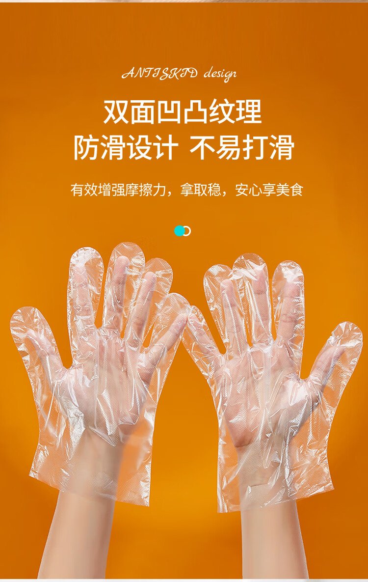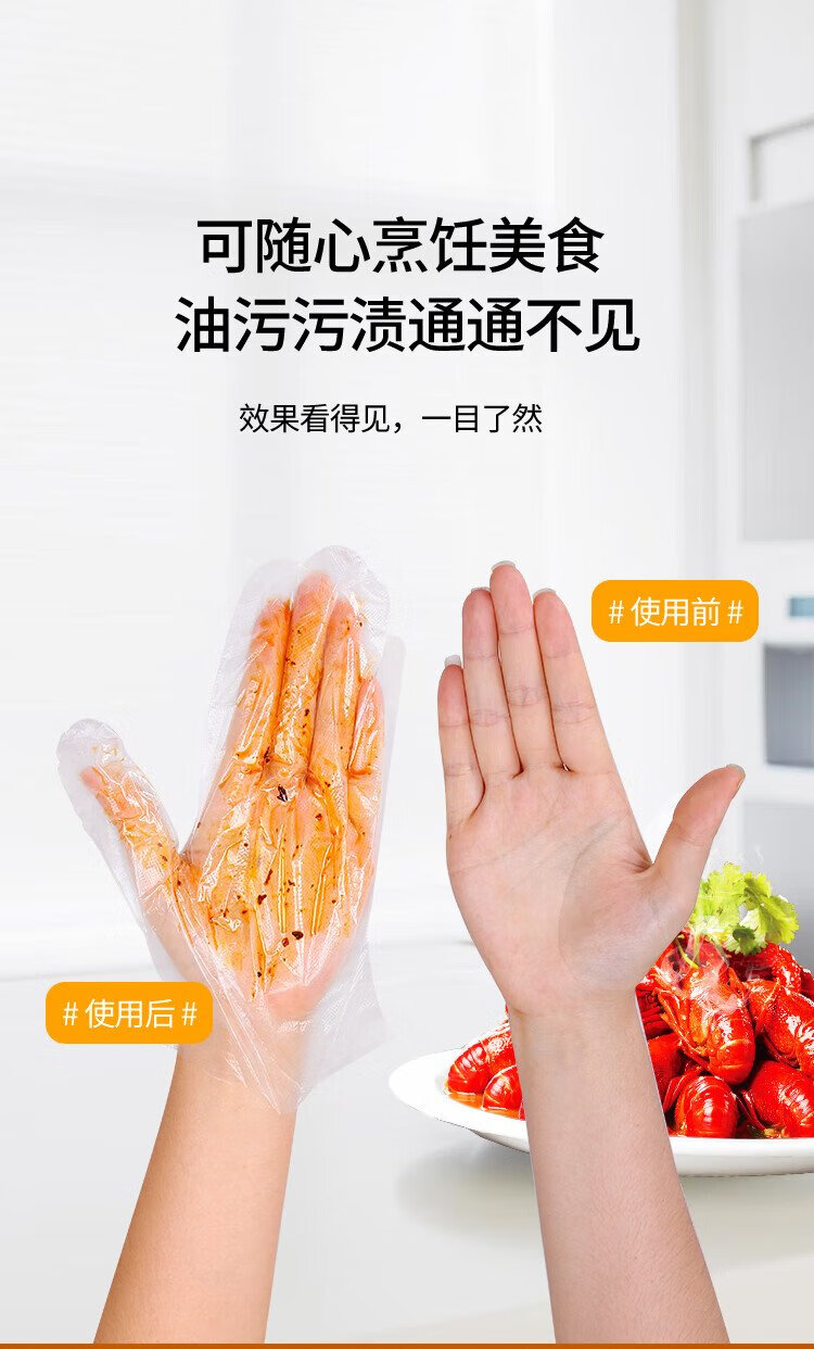Youao disposable gloves 200 pieces, thickened, removable plastic PE leak-proof for food, household kitchen, transparent baking