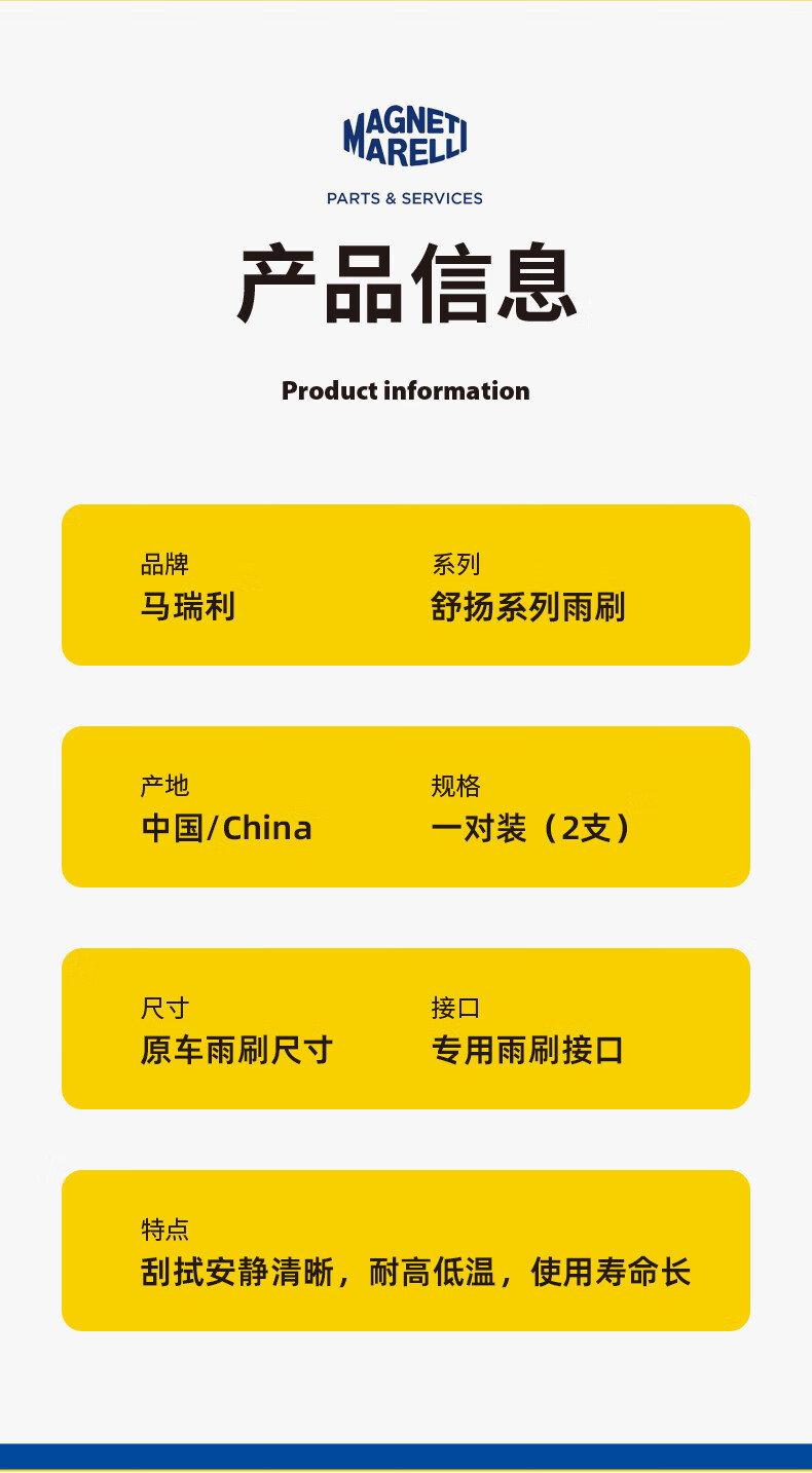 MAGNETI MARELLI Shuyang series wipers/wiper blades are suitable for Audi A4/A4L/A5/Q5/Q5L/S5/Q3/RS5/Lingdu