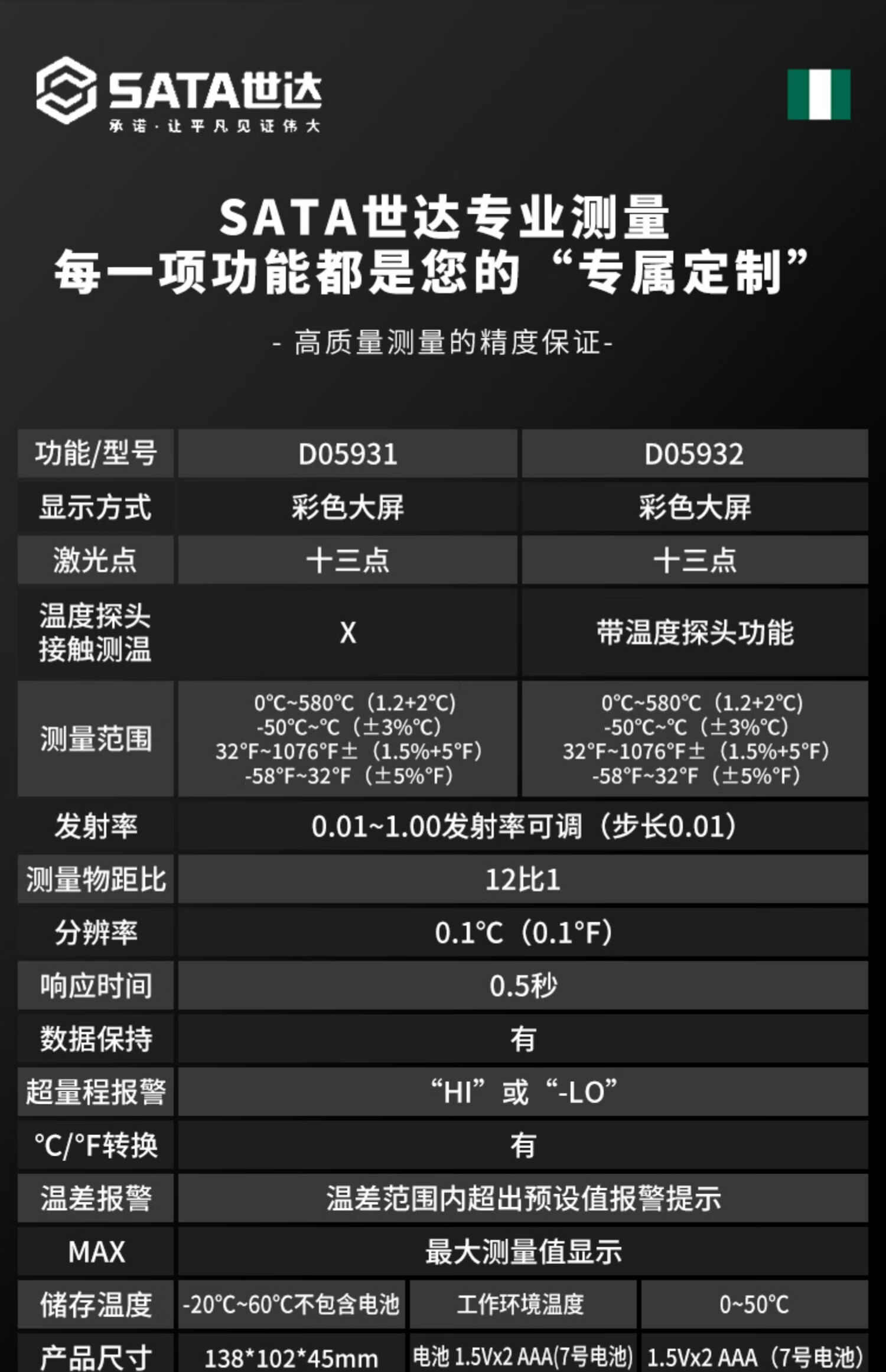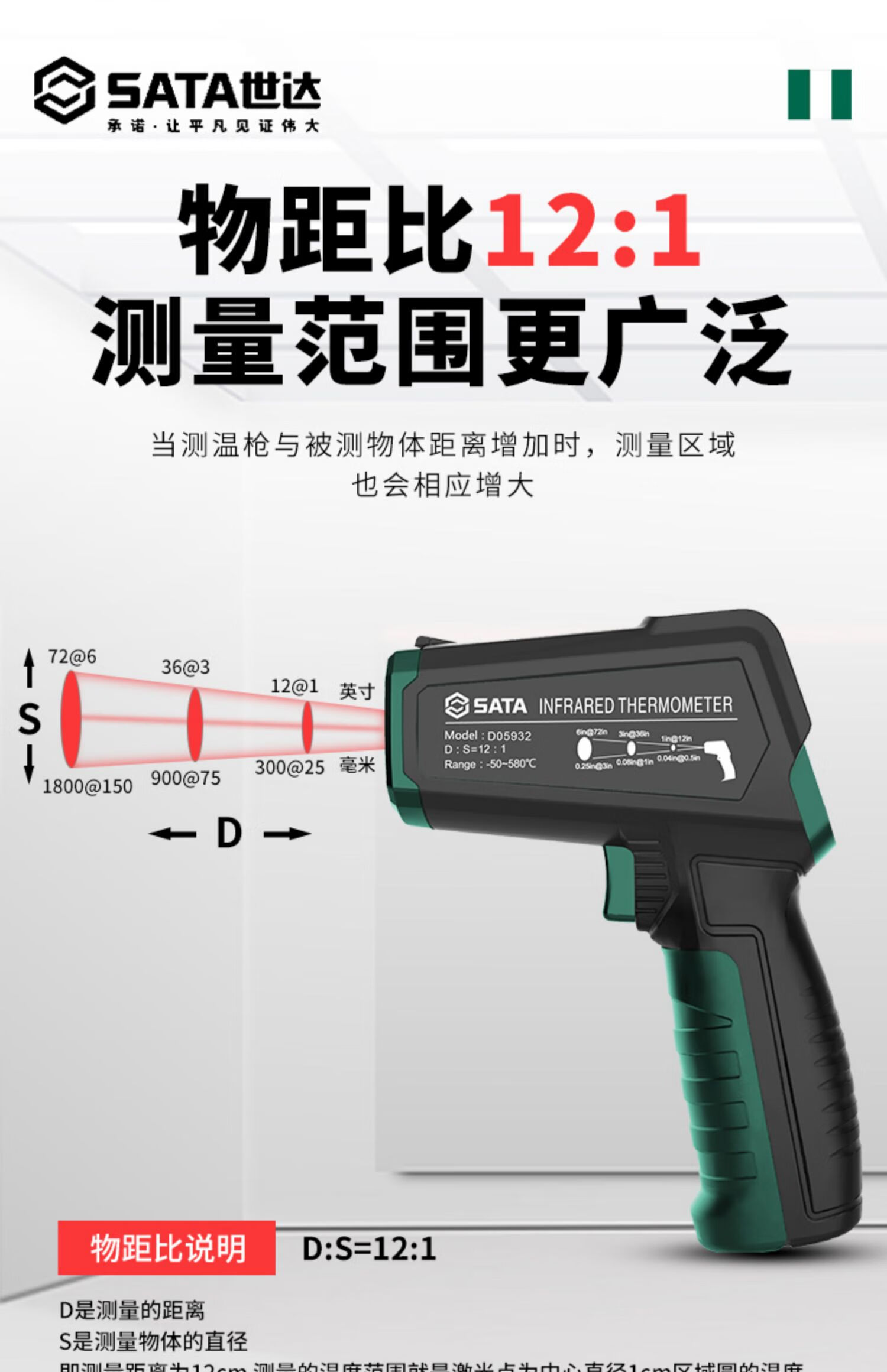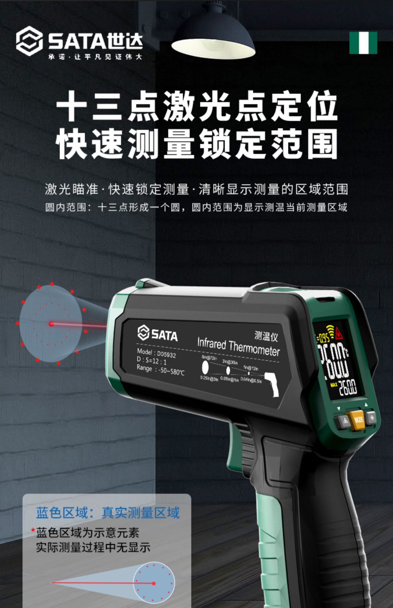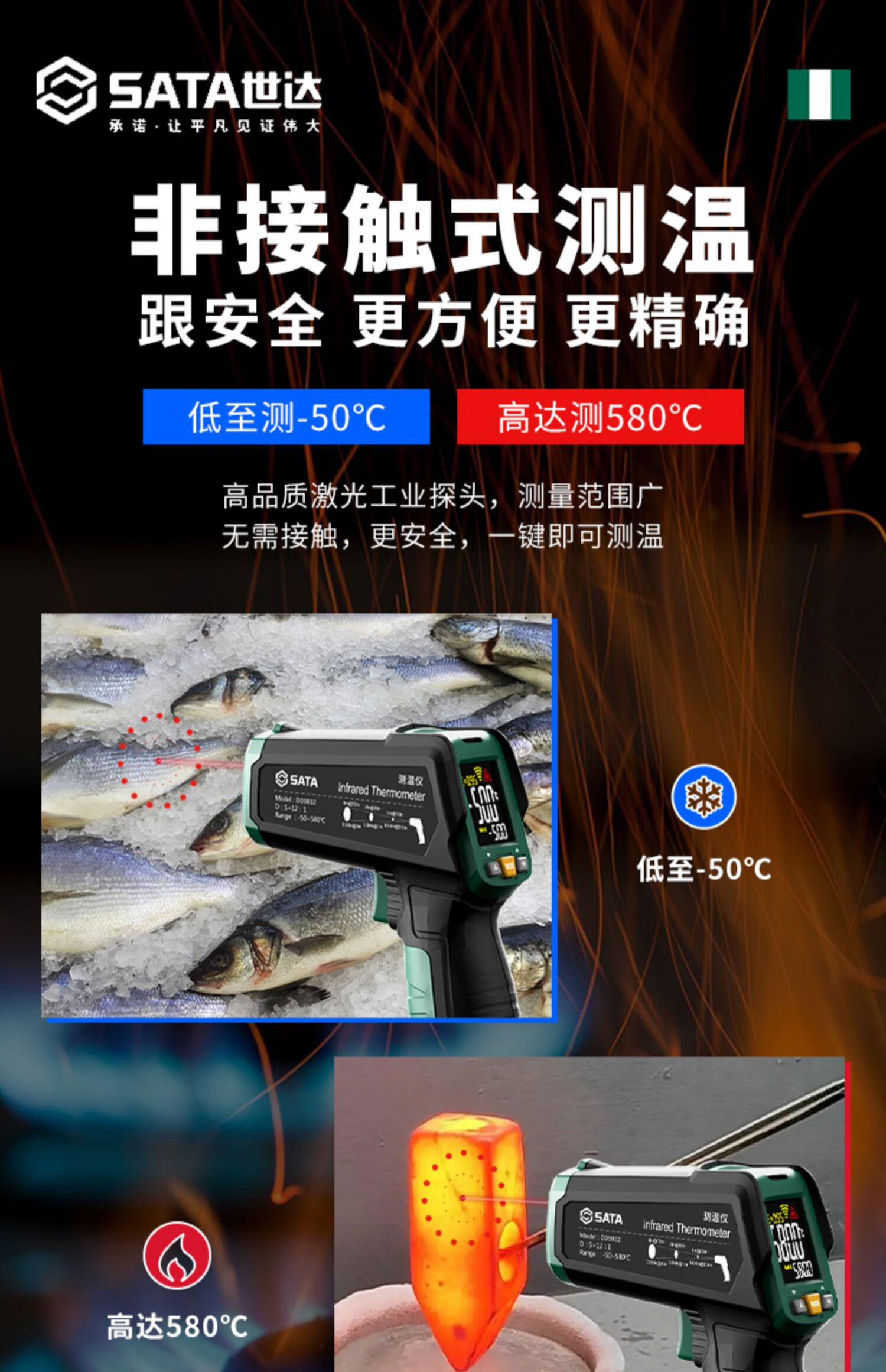 Shida SATA infrared thermometer high-precision kitchen baking temperature gun thermometer industrial oil temperature gun D05932