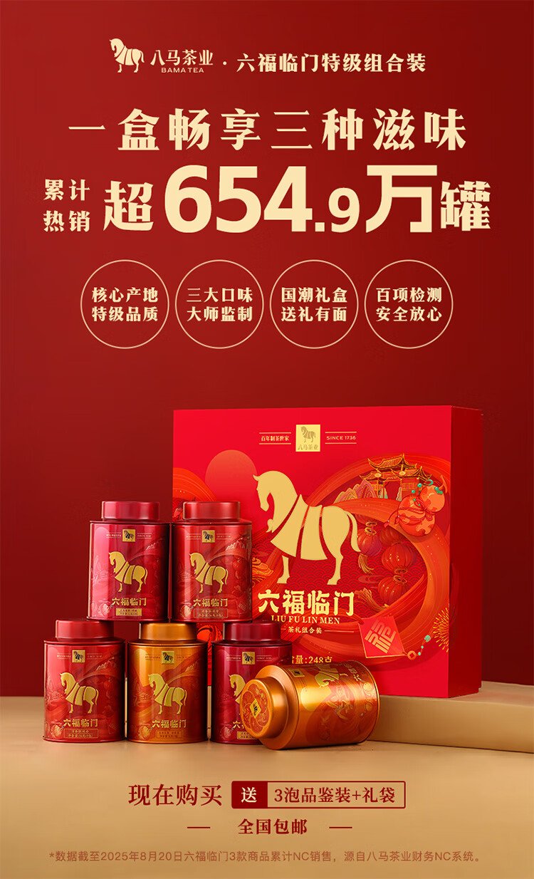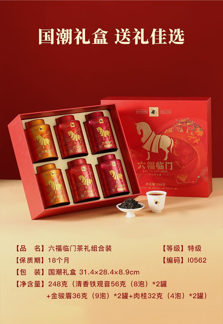 Bama Tea Liufu Linmen Three Teas Black Tea Jinjunmei Tieguanyin Cinnamon 248g Tea Gift Box
