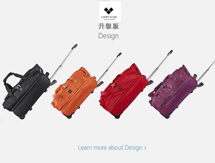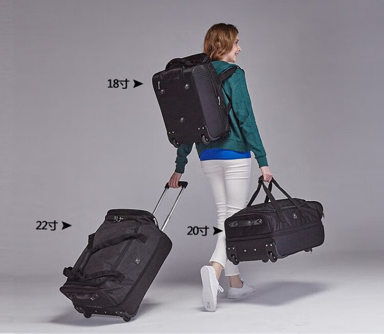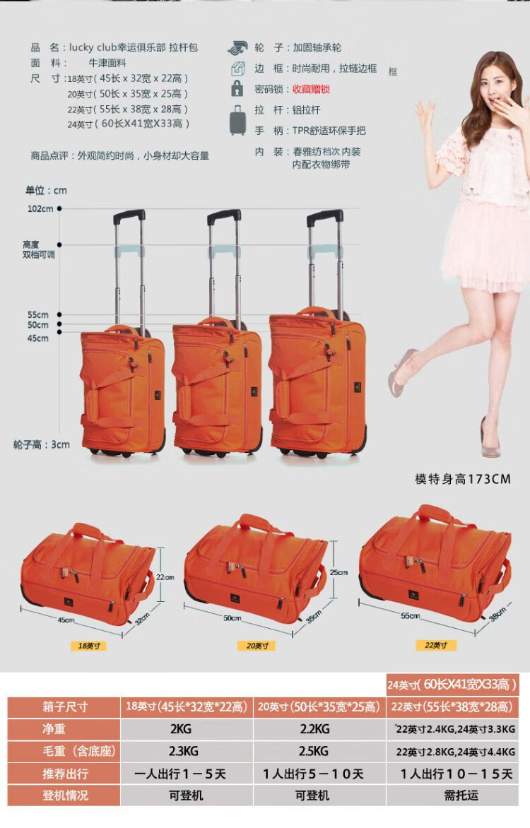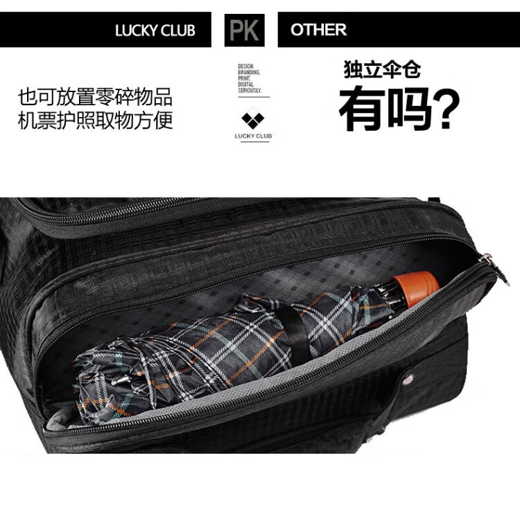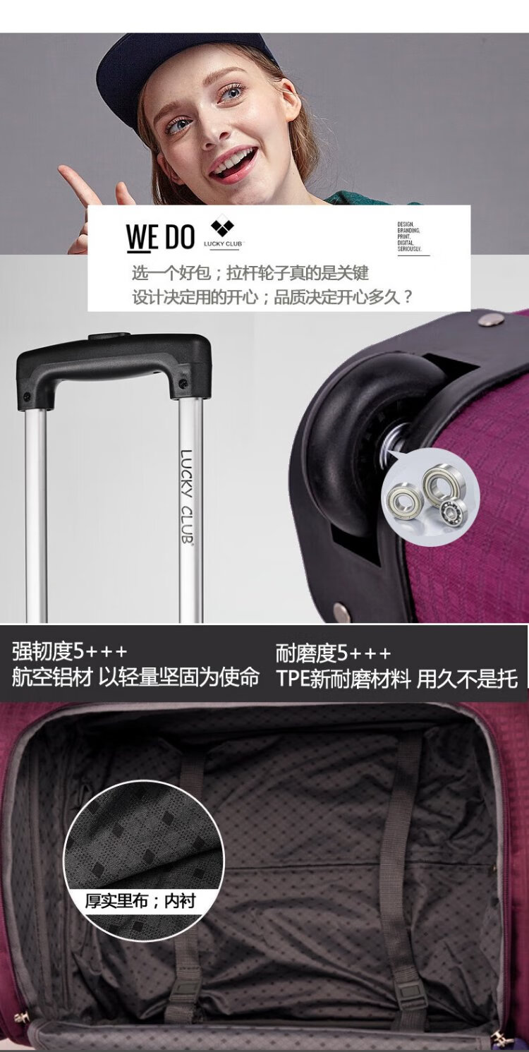 LUCKY CLUB trolley bag travel bag Oxford cloth portable canvas short-distance boarding backpack luggage bag 20 inches calm black