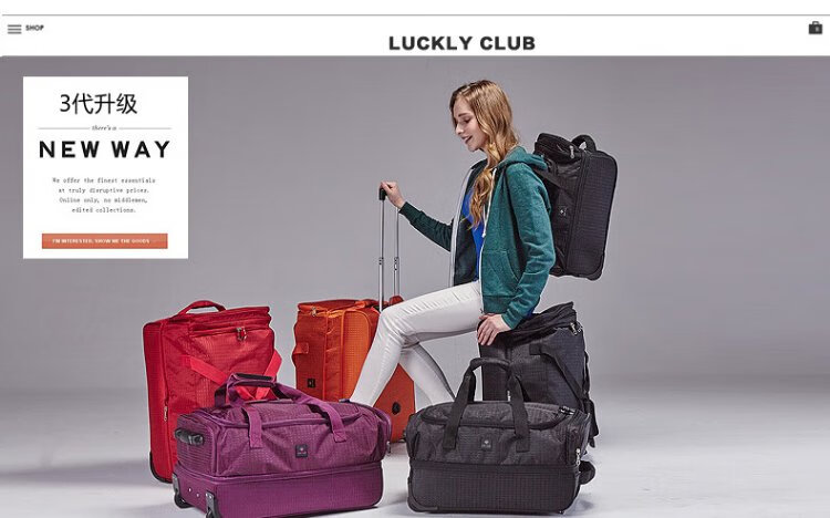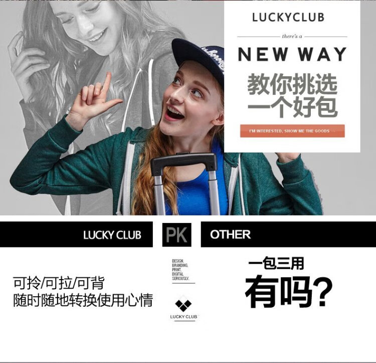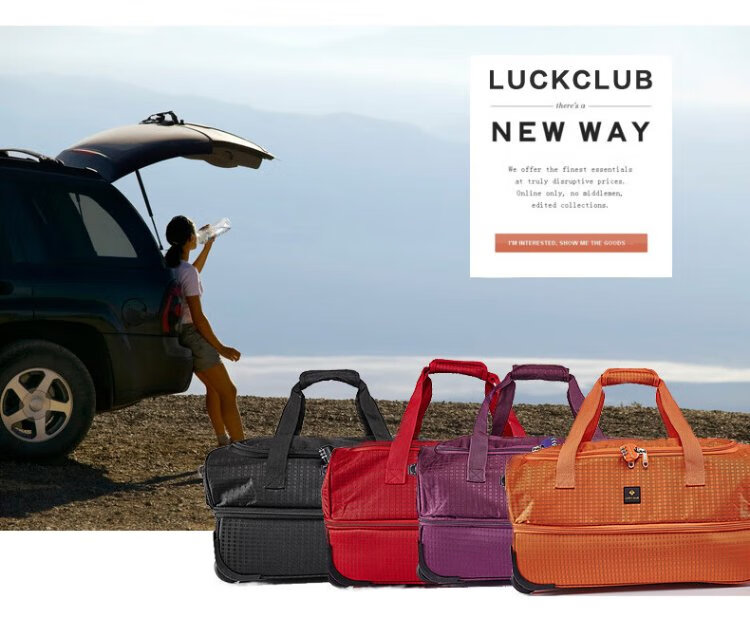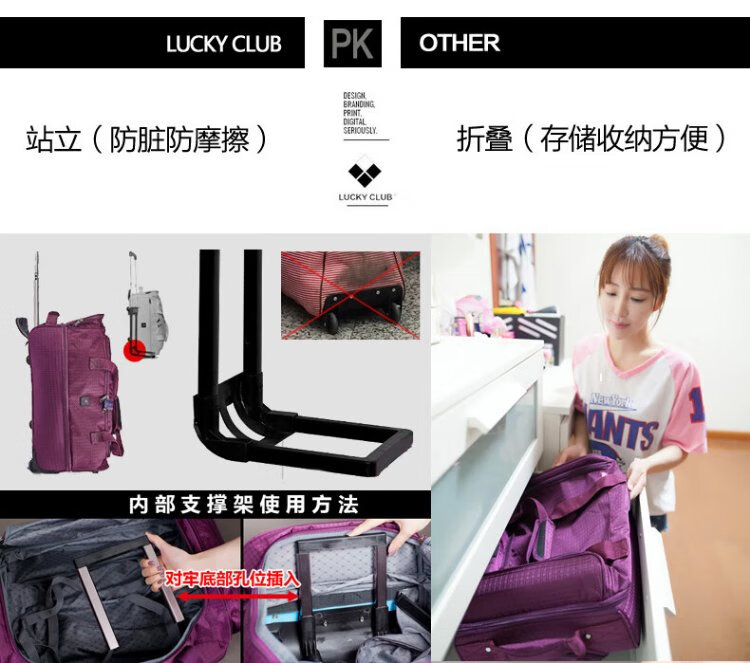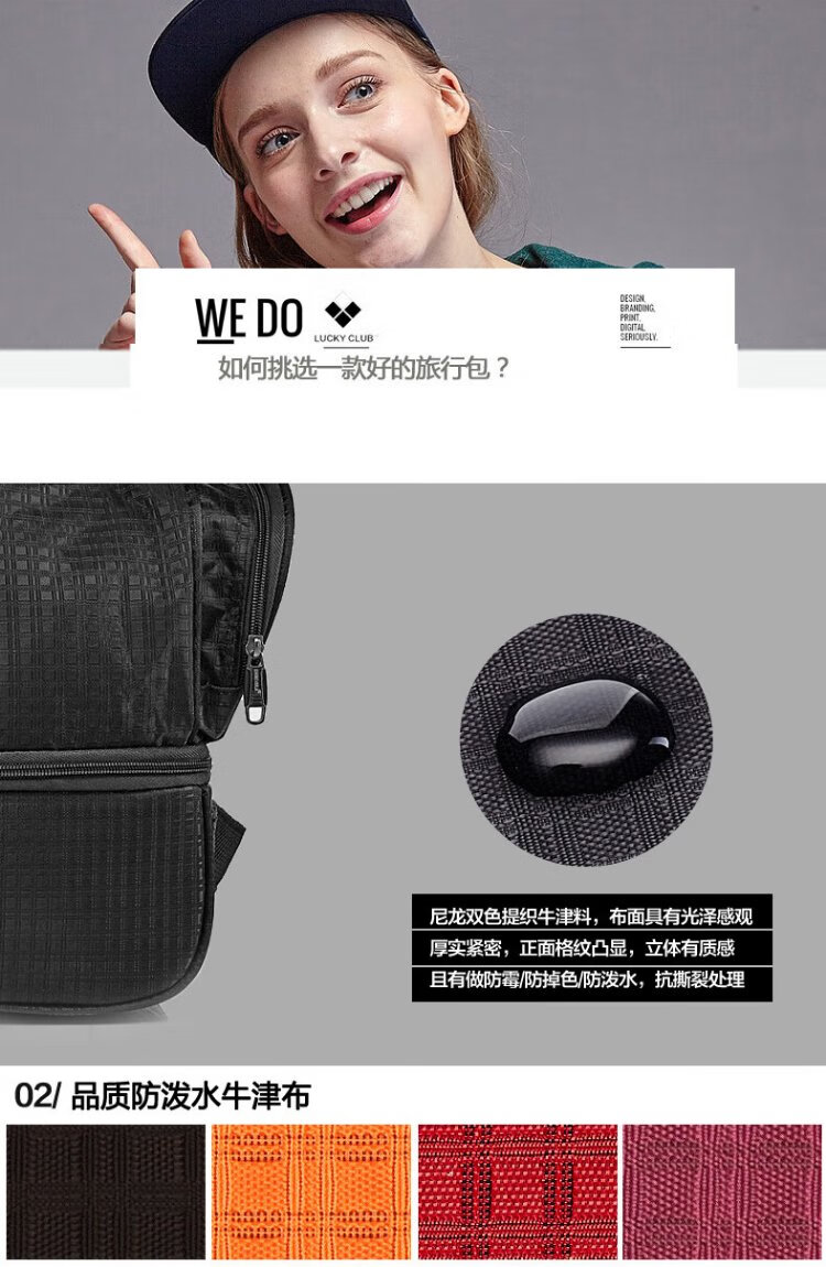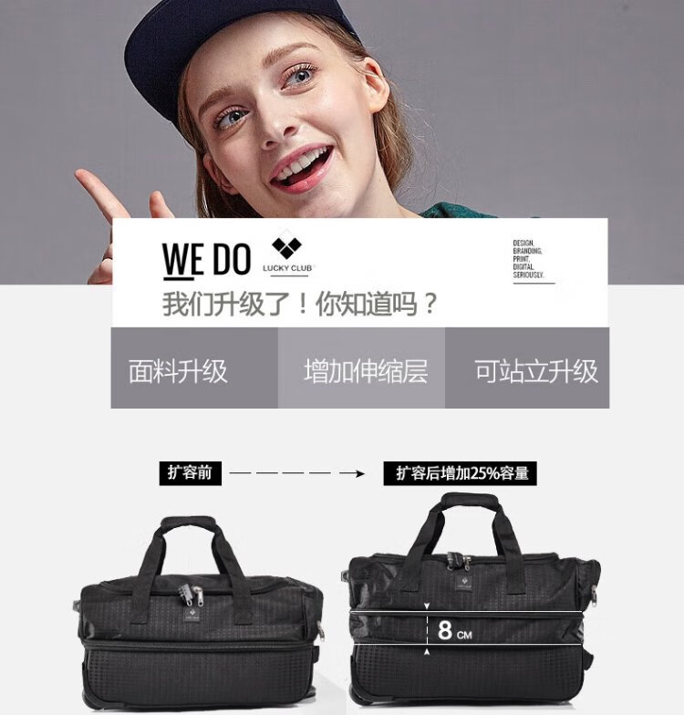 LUCKY CLUB trolley bag travel bag Oxford cloth portable canvas short-distance boarding backpack luggage bag 20 inches calm black
