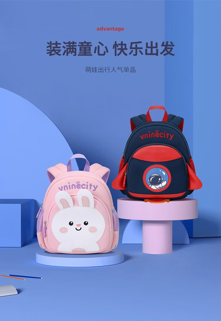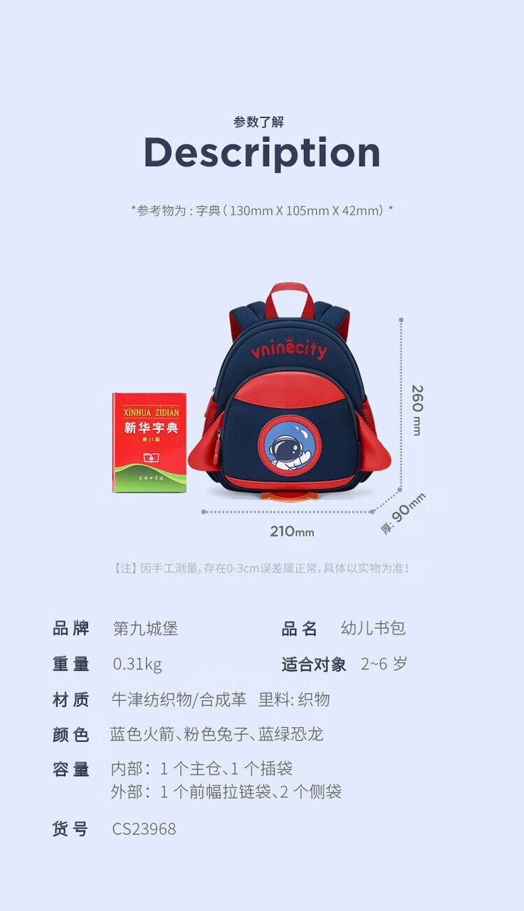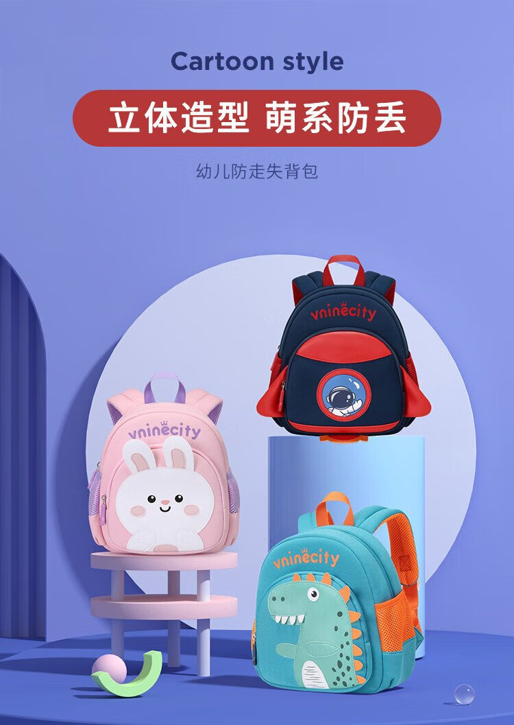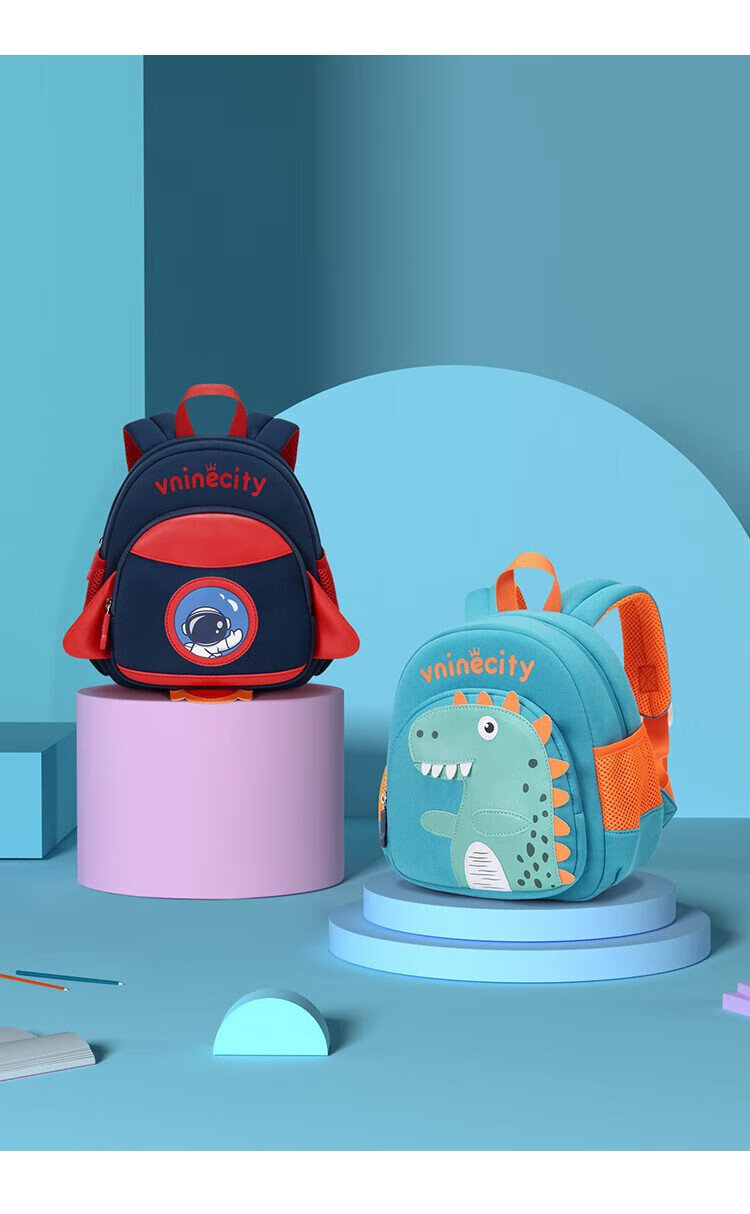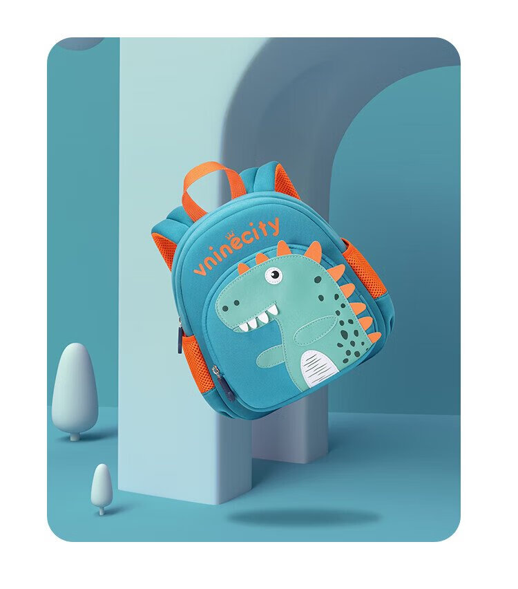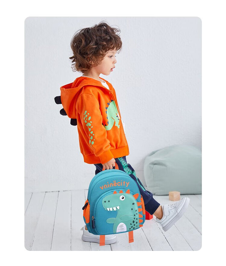 Vnine City Hong Kong Ninth Castle Kindergarten Baby Anti-lost Backpack 3-6 Years Old Children's School Bag Boys and Girls Cartoon Cute Outdoor Travel Small Bag CS2BV3968C Blue and Green Dinosaur
