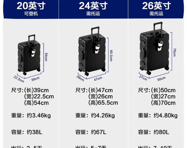 Heilan House (HLA) luggage for male and female students, aluminum frame trolley case, travel code checked suitcase, Obsidian Black 26 inches