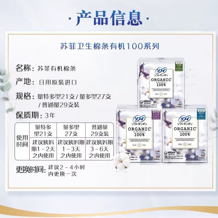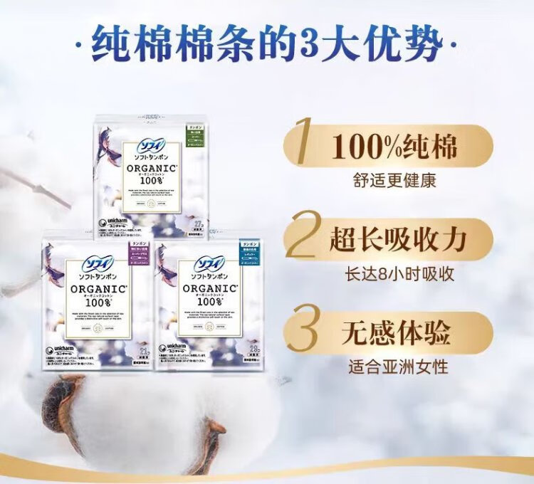 Sophie built-in tampon sanitary napkin pure cotton 29 pieces normal flow Unicharm cotton swab aunt napkin swimming without feeling