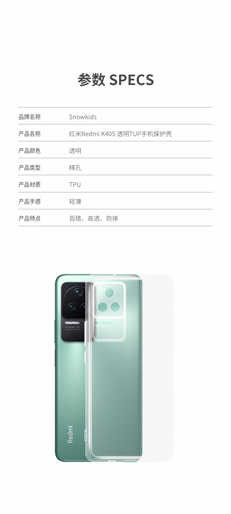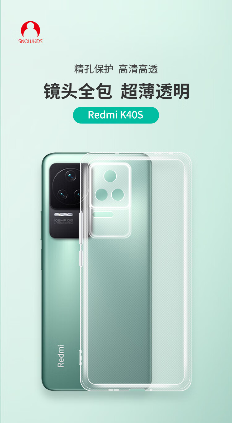 Snowkids is suitable for Xiaomi Redmi K40S mobile phone case Redmi protective cover all-inclusive light and ultra-thin heat dissipation four-corner anti-fall transparent soft shell for men and women
