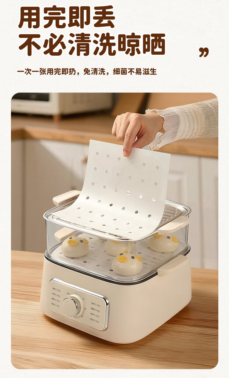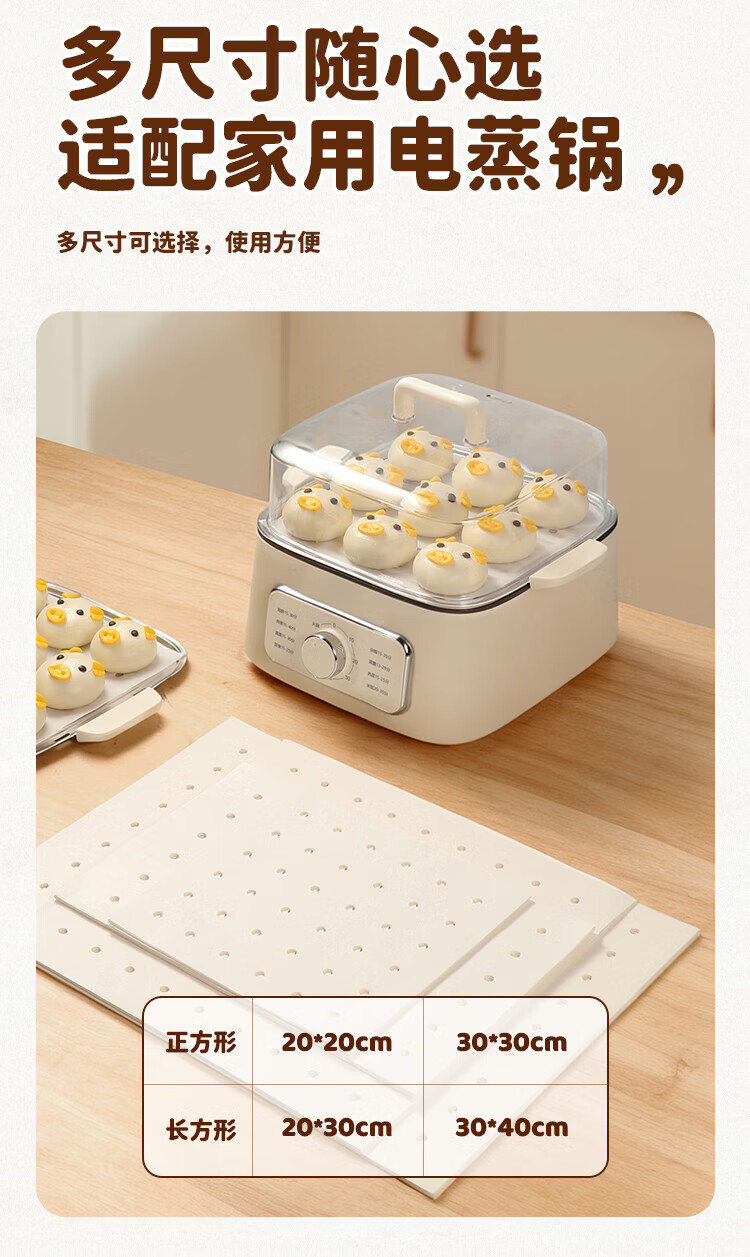 MAXCOOK steamer paper bun pad paper steamed bun paper steamer drawer paper disposable 50 sheets 20*30cm square MCPJ3928