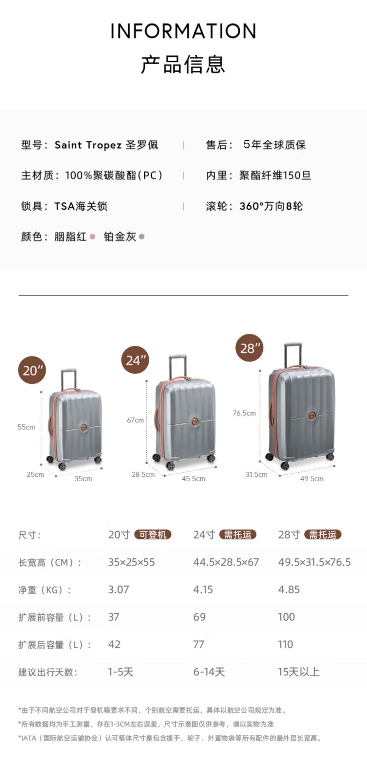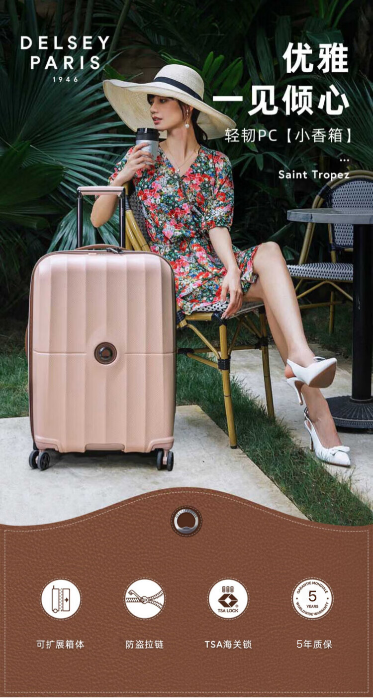 DELSEY Trolley Case Women's French Suitcase 24-inch PC Material Capacity Ambassador Password Box Checked Luggage