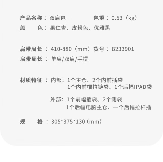 Golf (GOLF) Backpack Women's 14/15-inch Laptop Bag Huawei Travel Backpack School Bag Business Trip Gift for Girlfriend