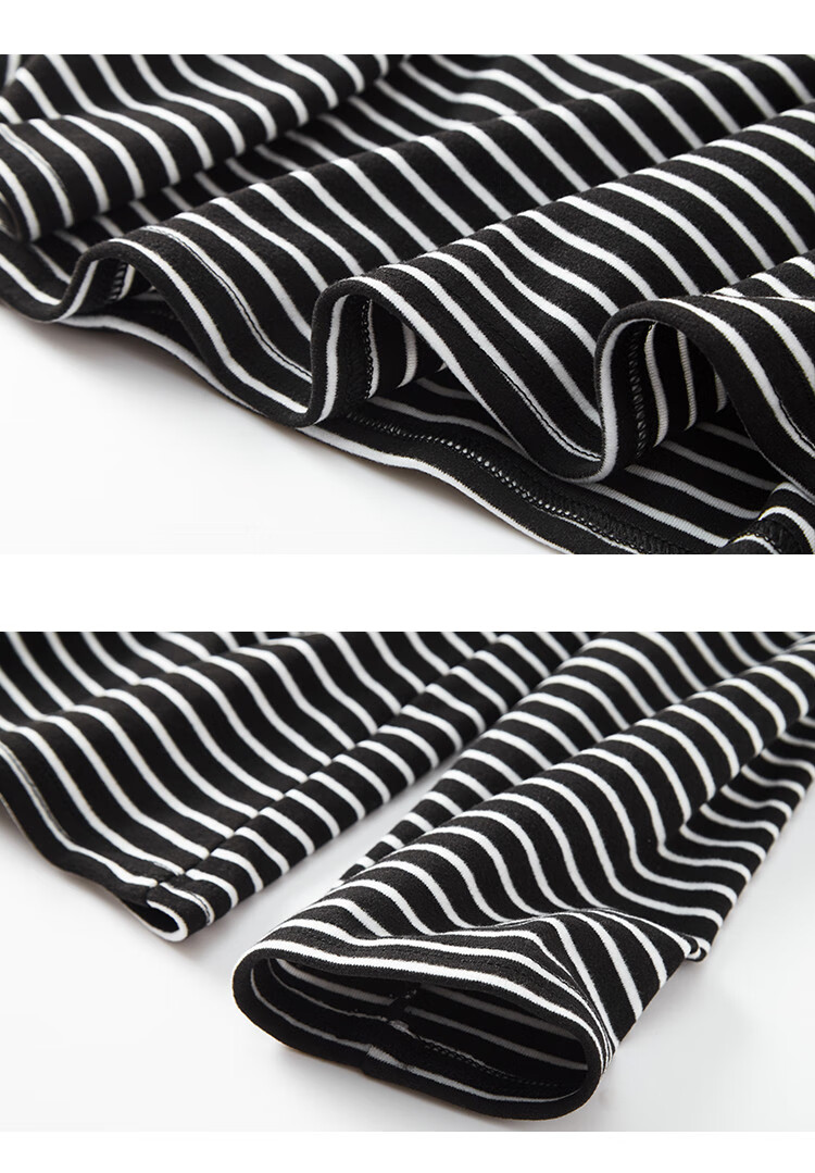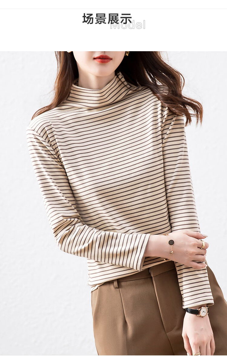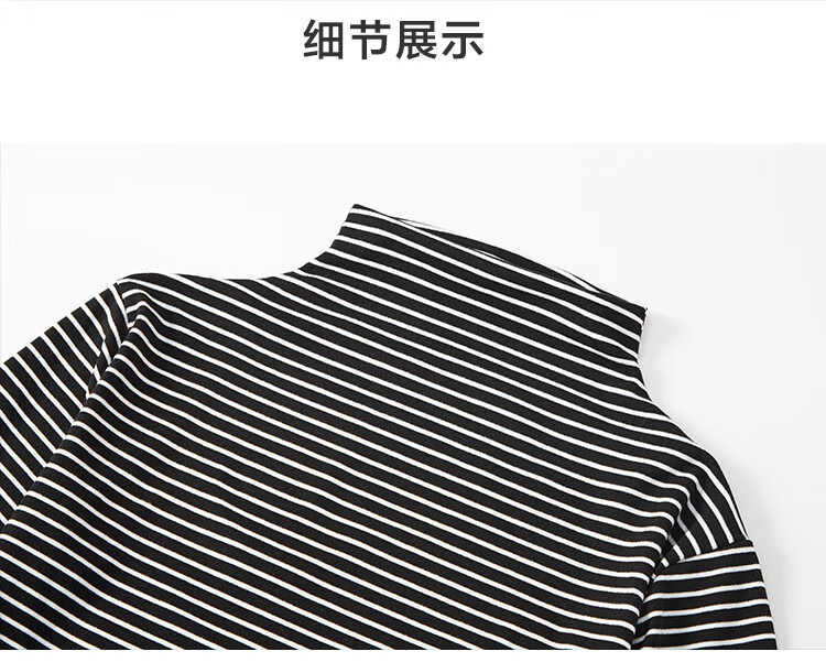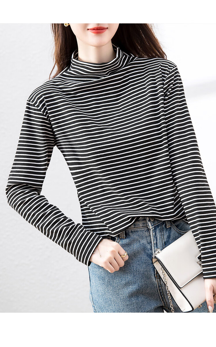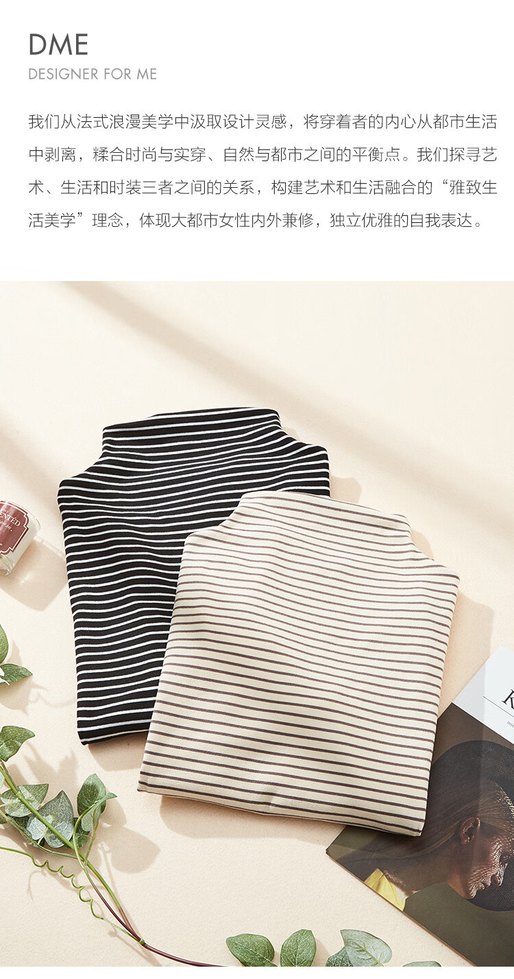 Demana (dme) super elastic striped half turtleneck comfortable striped bottoming shirt for women with top and bottoming shirt for women, black L