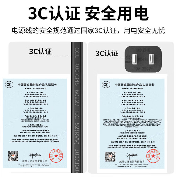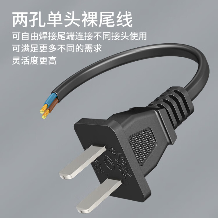 Guangchangxing (G.C.X) 3C certification national standard power cord two-core bare tail with two plugs two-hole electrical self-wiring electrical equipment internal wiring 2-core 0.75 square copper black 3 meters long