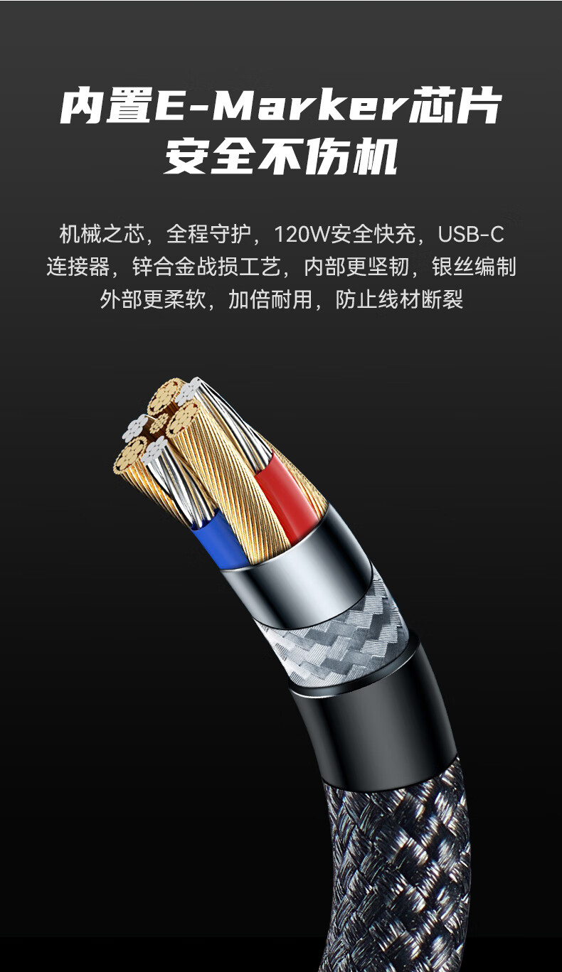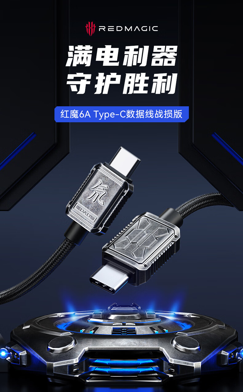 Nubia Red Magic Type-C data cable PD fast charging 120W charging cable 6A universal Apple 15 Huawei matebook notebook braided cable 1.5 meters battle damaged version
