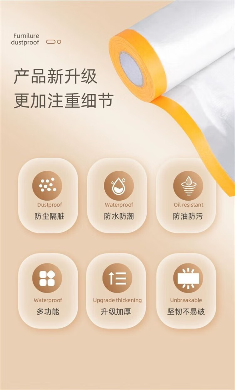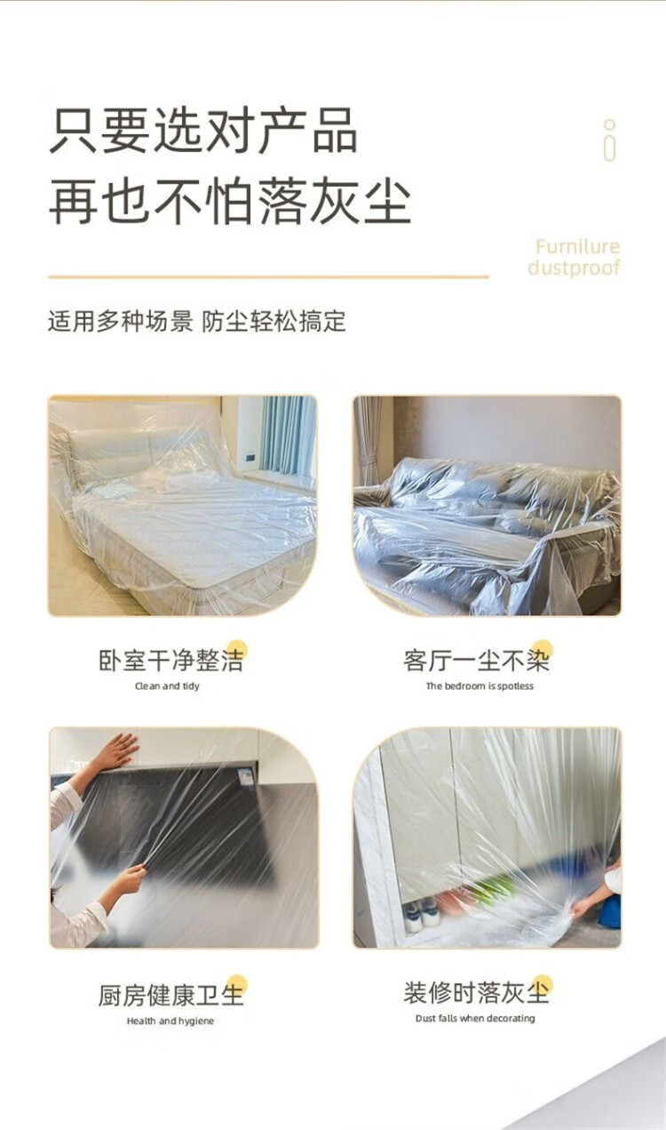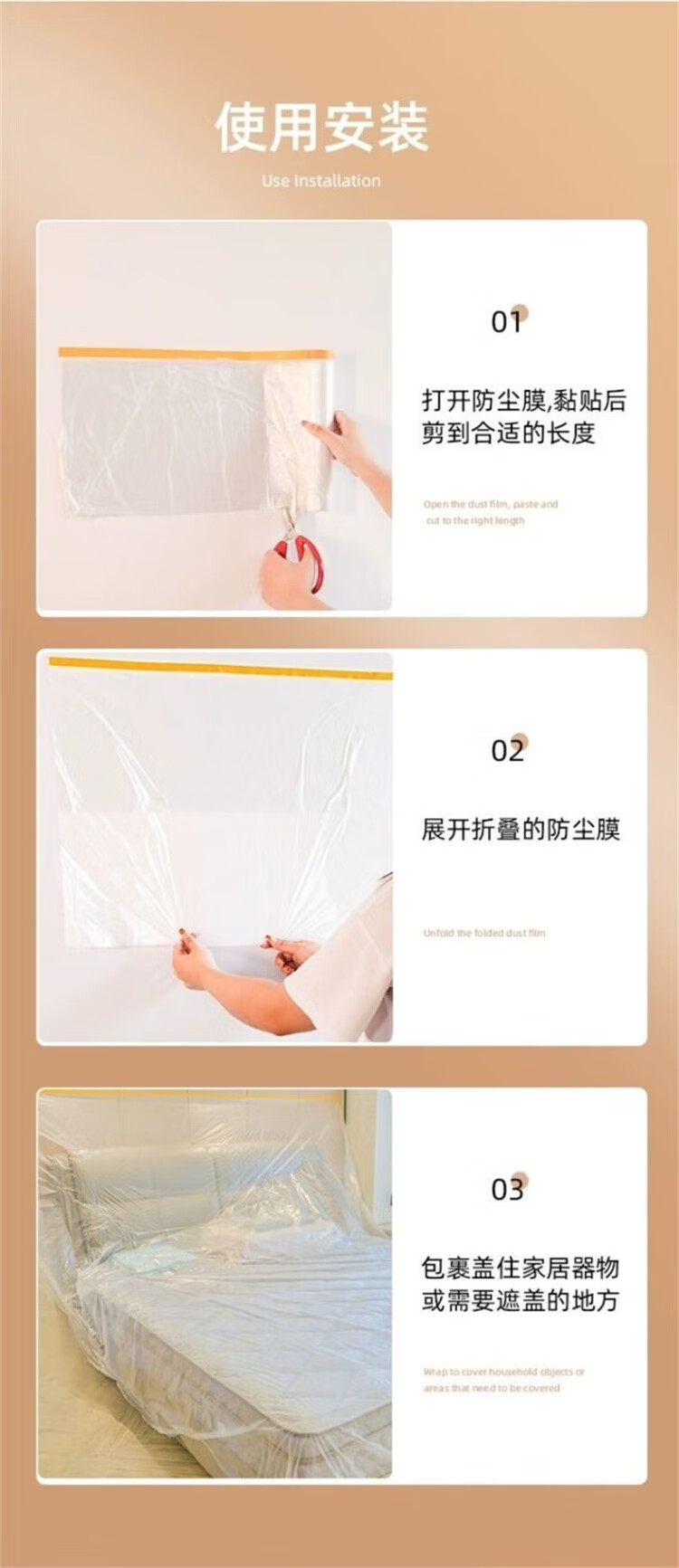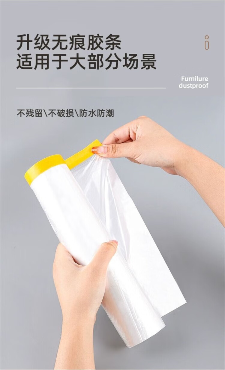 Zhaoshen Dustproof Plastic Film Disposable Dustproof Film Furniture Protective Film Decoration Paint Spray Masking Film Dormitory Dust Covering Film with Positioning Sticker 4m*20m*1 Roll Jingcangfa