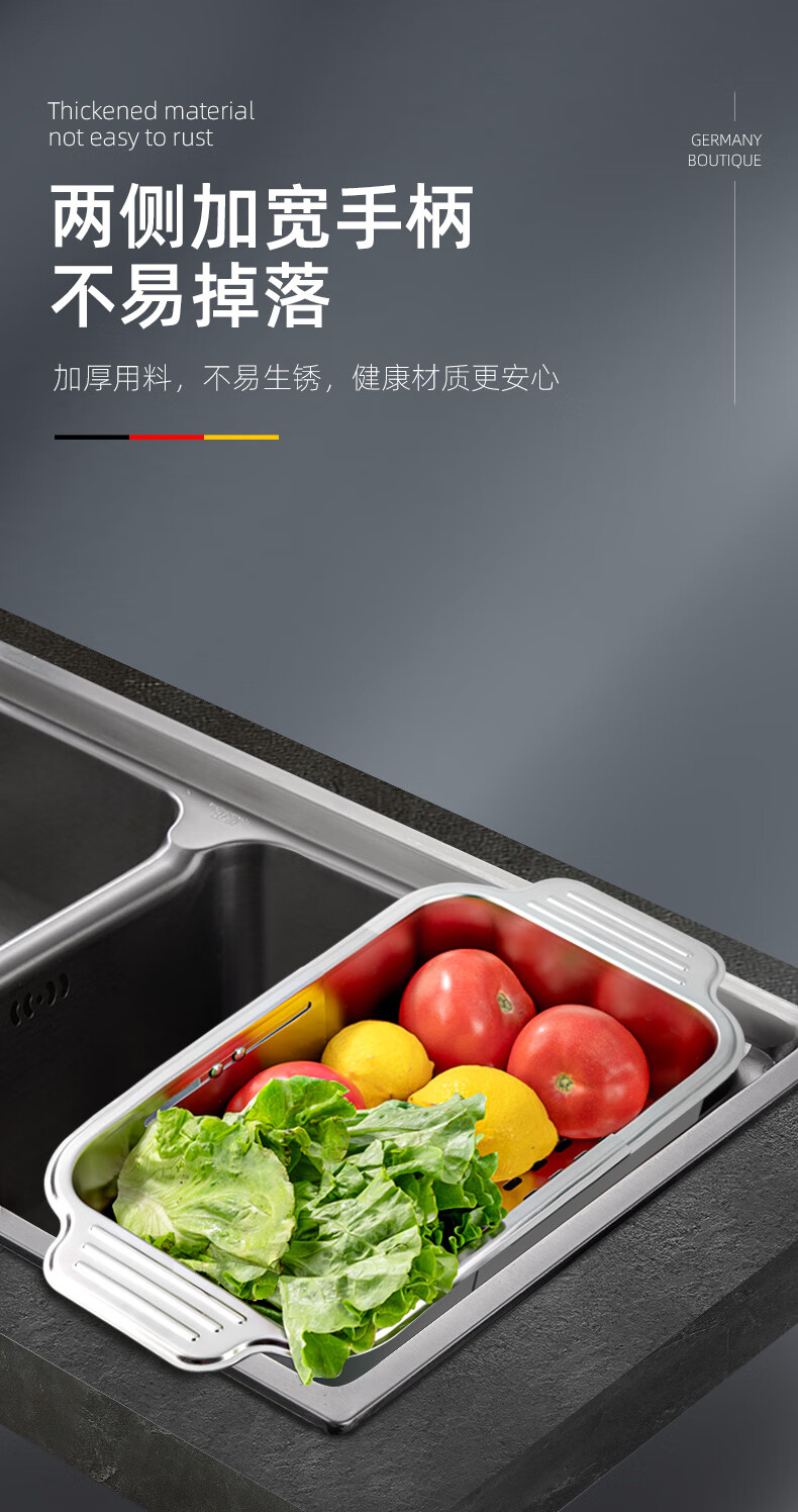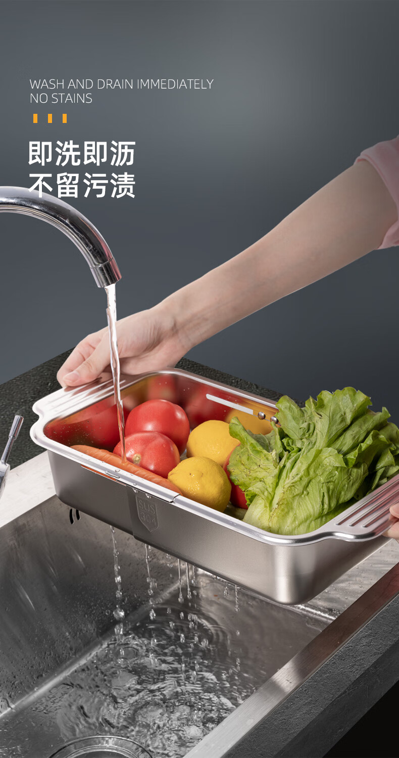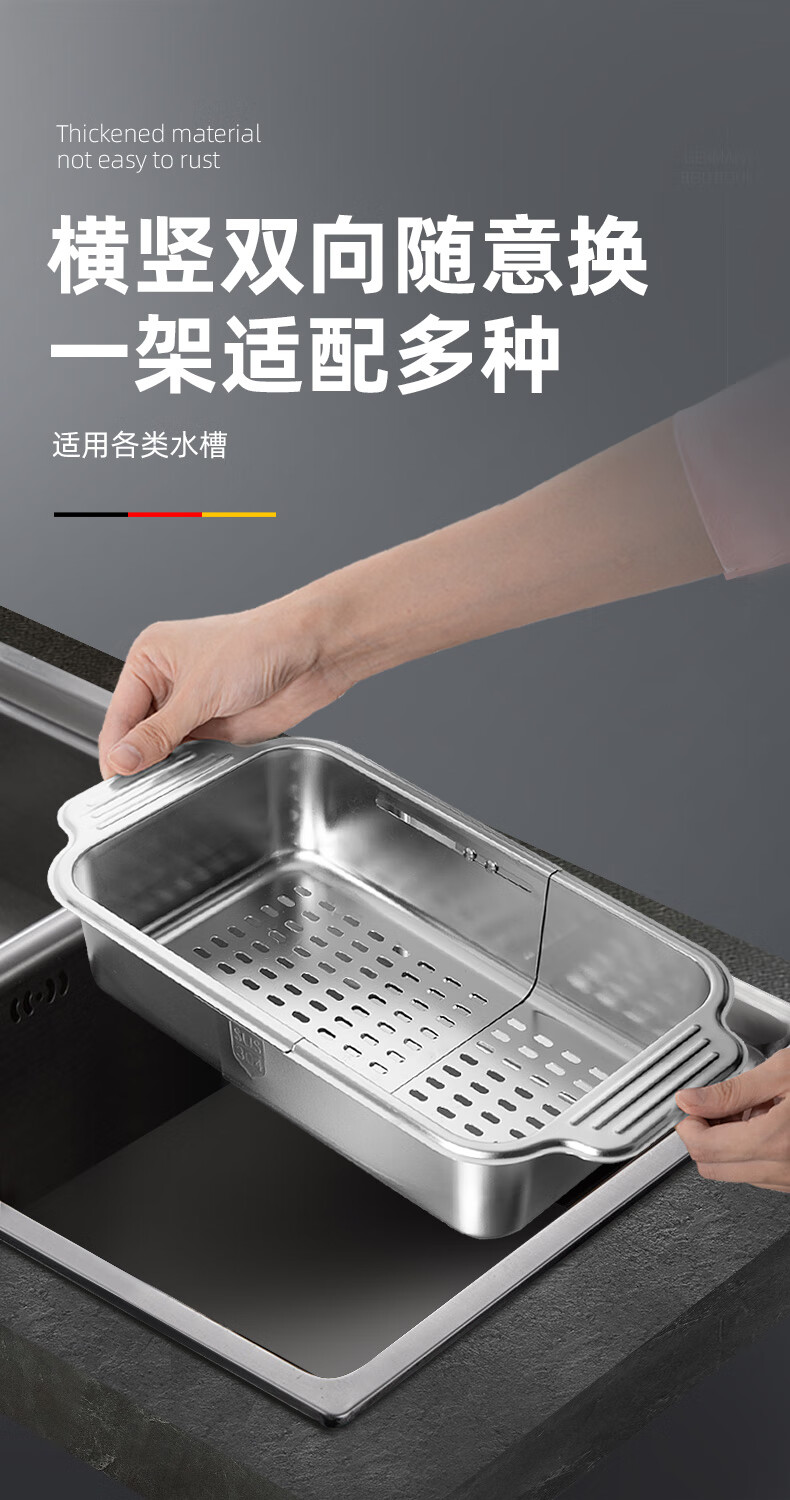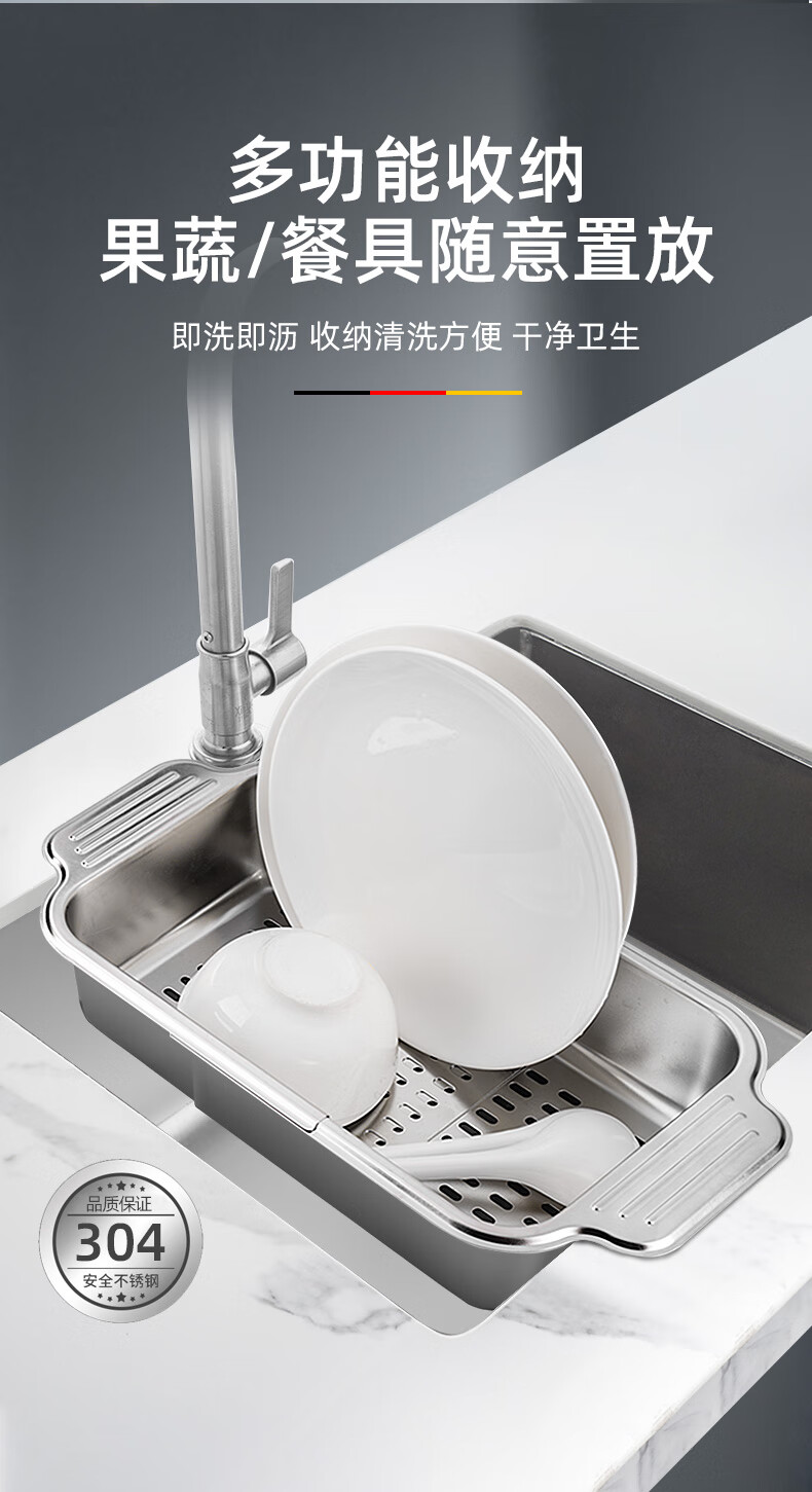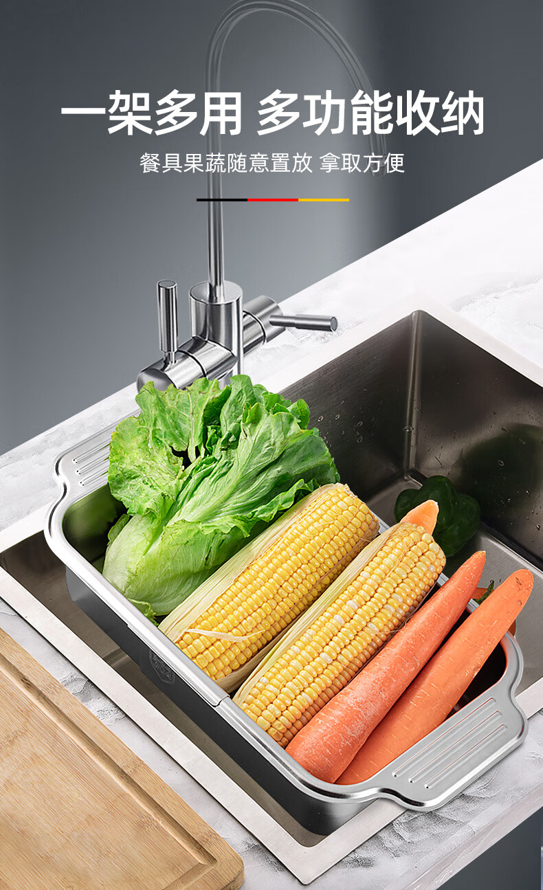 Newair 304 stainless steel drain basket sink drain rack retractable dish rack sink fruit and vegetable washing basket storage rack