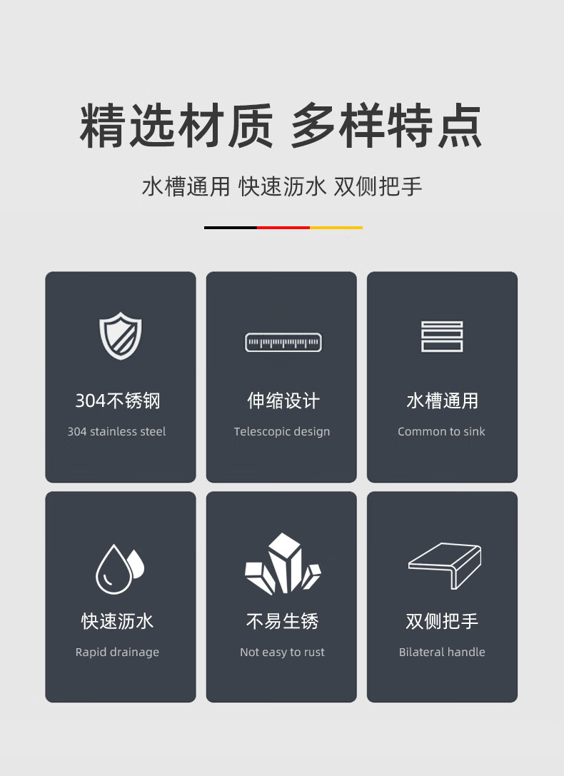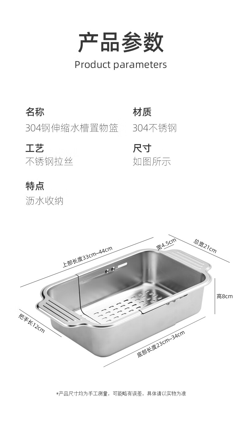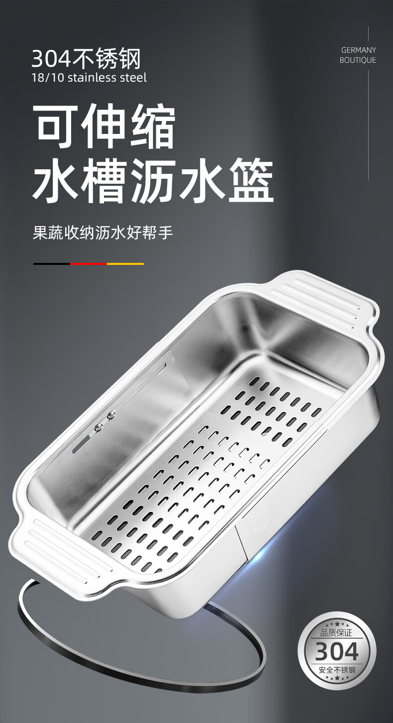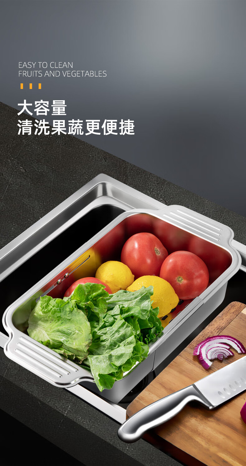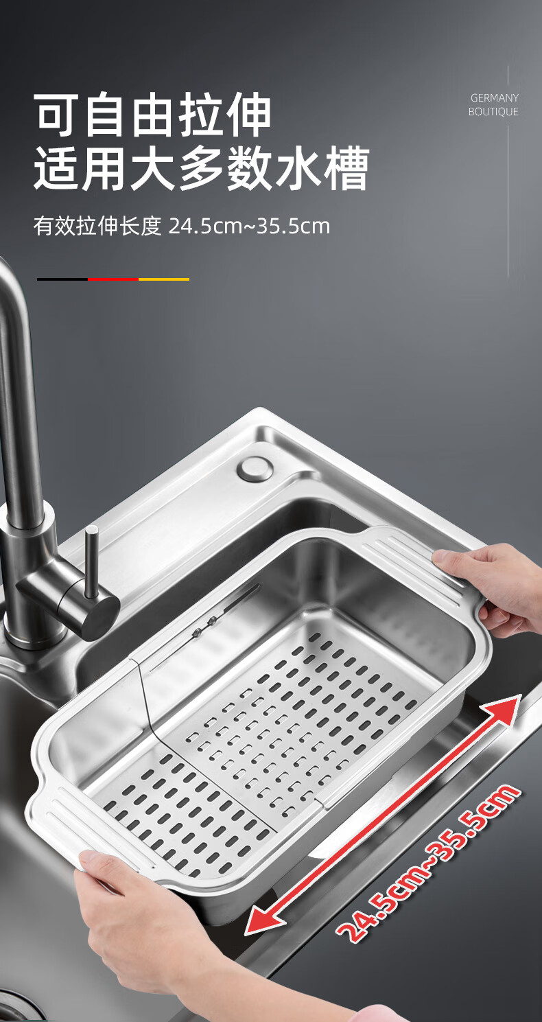 Newair 304 stainless steel drain basket sink drain rack retractable dish rack sink fruit and vegetable washing basket storage rack