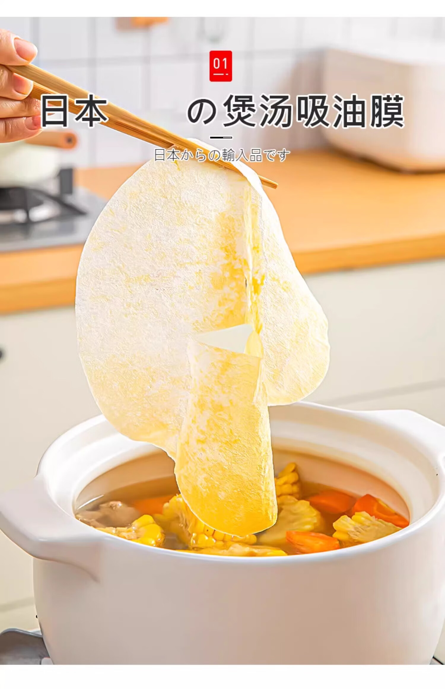 Home KATEI STORY Japanese food-grade soup-making oil-absorbing paper for food kitchen cooking, stewing, frying and soup with oil-absorbing paper film to remove oil 30 pieces