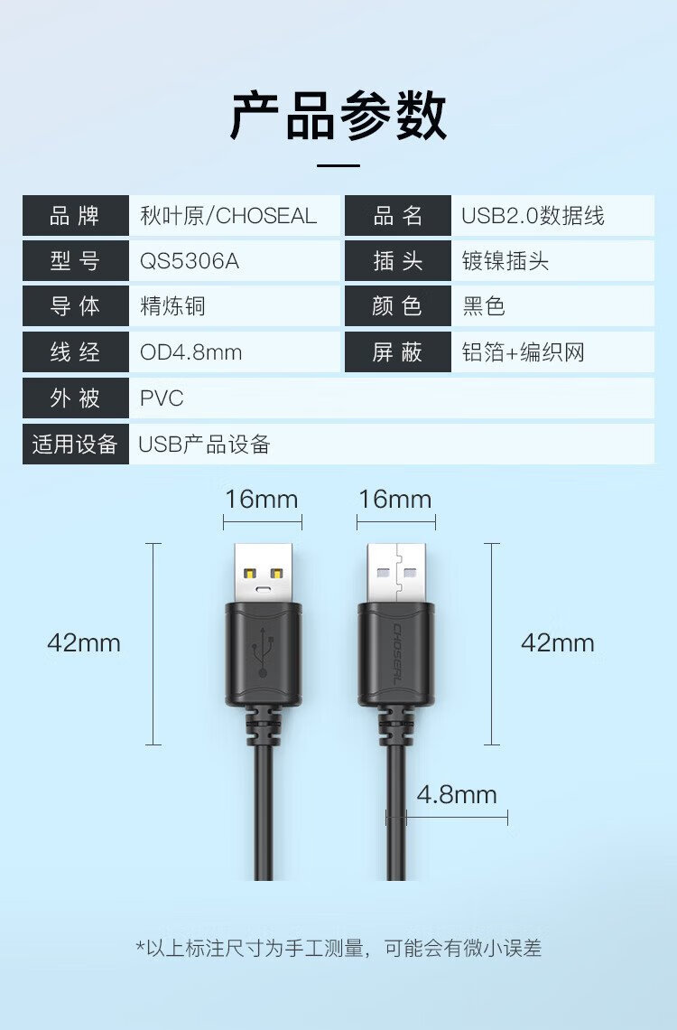Akihabara (CHOSEAL) high-speed USB2.0 data cable male-to-male double-ended mobile hard disk box high-speed transmission cable notebook radiator set-top box 0.5 meters QS5306A