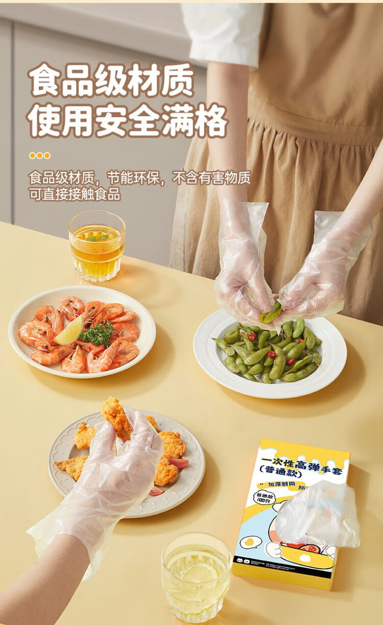 Cui Dahuang disposable gloves 100 pieces for food removable TPE thickened leak-proof household kitchen crayfish peeling
