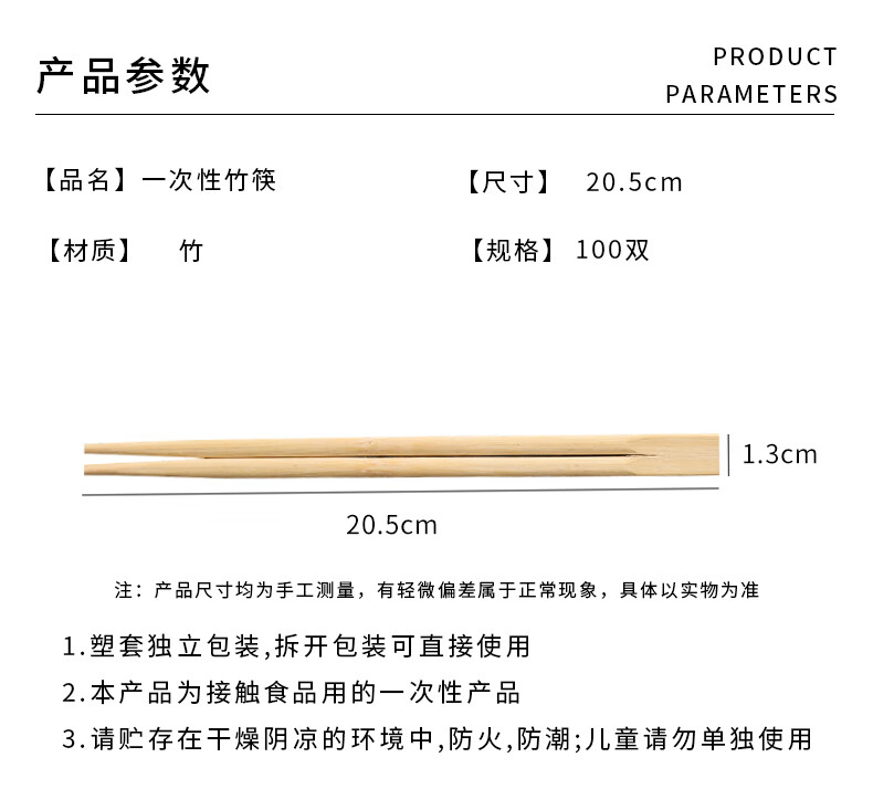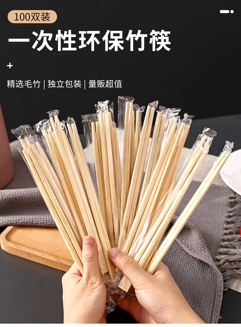 Jiachi conjoined twin chopsticks disposable chopsticks 100 pairs independently packaged thick chopsticks convenient chopsticks tableware supplies