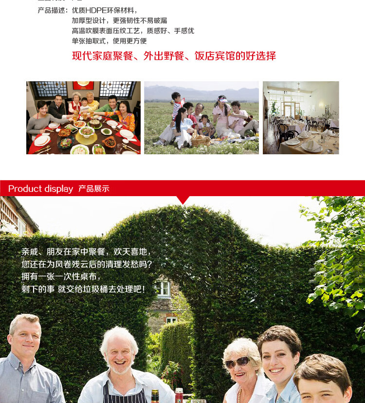 Yijie disposable tablecloth festive tablecloth red 30 pieces 180cmx180cm JD-5684