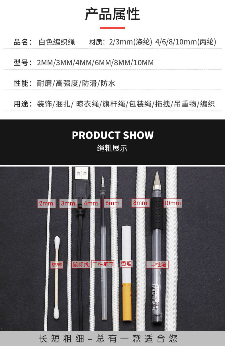 Bingyu nylon rope 2mm100m truck binding rope clothes drying braided rope salvage rope BYyn-469